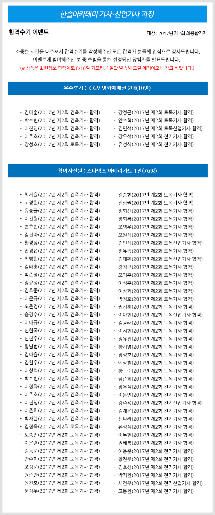 2017년 제2회 기사, 산업기사 합격자 수기 이벤트(마감)