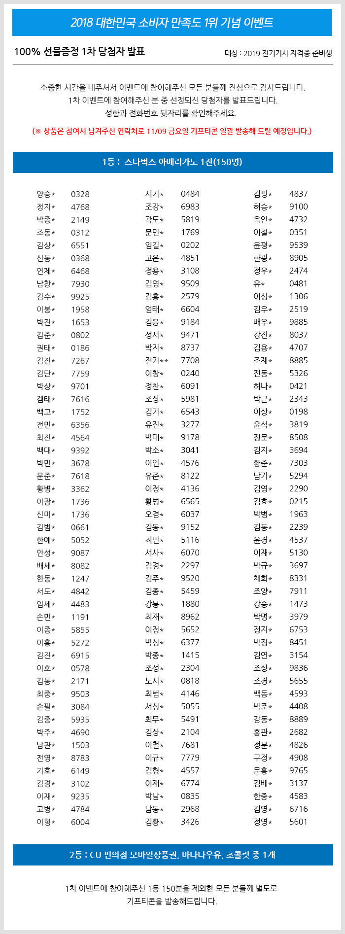 2018 대한민국 소비자 만족도 1위 기념 이벤트 1차 당첨자 발표