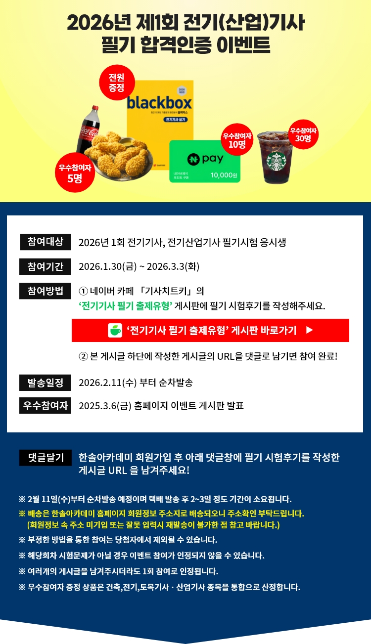 2026 제1회 전기기사, 전기산업기사 필기 합격인증 이벤트
