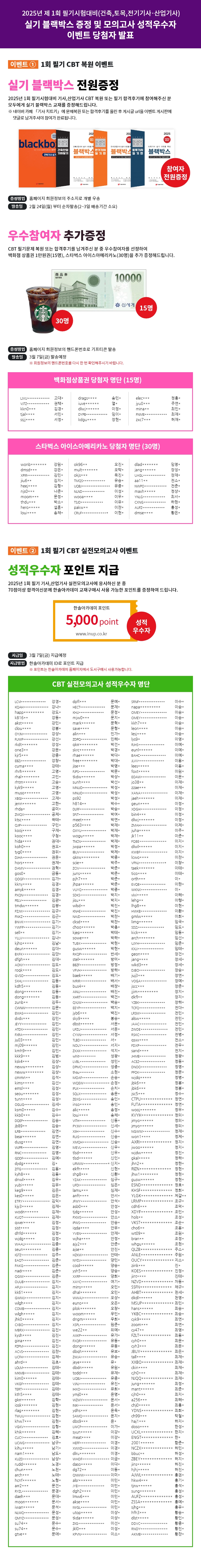 2025년 제1회 필기 CBT 복원 및 모의고사 성적우수자 이벤트 당첨자 발표