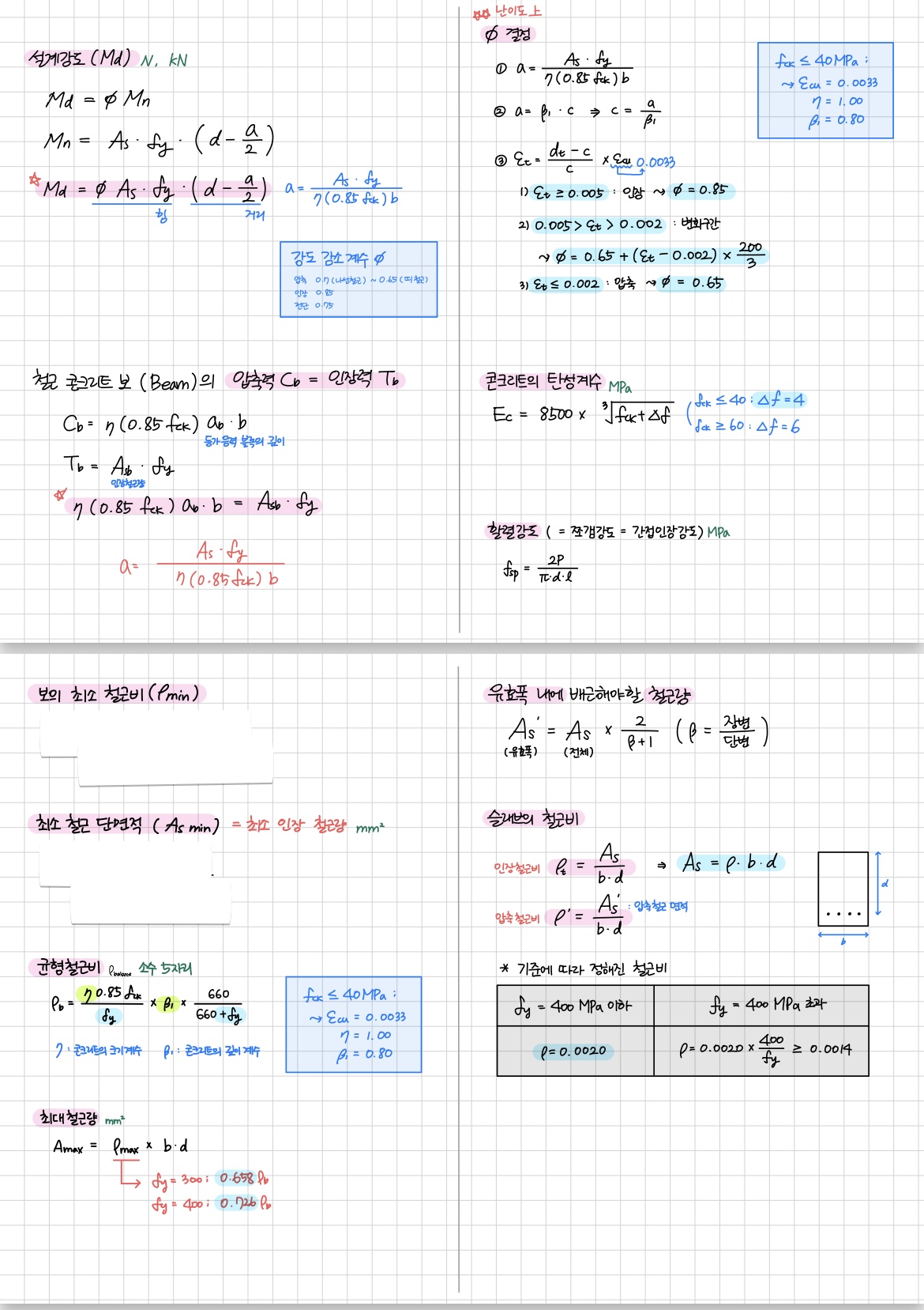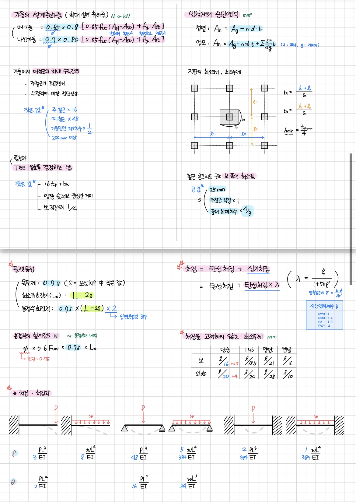 ☑️ 실기 전 실기 공부시에 한솔 빨간 책과 파란 책 두 권 다 구매하는 것을 추천드립니다. 책은 두권 구매하고 인강은 빨간 책 인강 듣는 것을 추천합니다! (전 파란책 인강 들었어요.) 시공 시공은 필기 때와 동일한 방법으로 선기출 후 구글링이나 교재의 이미지를 보며 공부하시면 됩니다. 답안 작성 시에는 새로운 답안을 창작하기 보다는 문제집의 답안을 그대로 외우는 것을 추천합니다. 저는 빨간책과 파란책 두 책을 다 사는 걸 추천드렸는데 그 이유가 두 책의 답안이 조금 다르기 때문입니다. 보통 파란책의 답안이 간결하고 빨간책의 답안이 상세한 편인데 짧다고 해서 더 잘 외워지고 그런 것이 아니기 때문에 두 책을 다 보며 공부했습니다. 두 책을 다 보면 더 잘 기억나는 답안이 있습니다...! 또한 절대로 안외워지는 문제는 없습니다. 계속 반복하다보면 어느새 달달달 외우고 계실 겁니다 ㅎㅎㅎ 적산 적산은 기본 개념만 이해하면 단순계산과 다를게 없습니다. 기본개념이 도저히 이해가 안된다면 적산 개념 강의를 들으시고 그 뒤로는 문제를 많이 풀어보며 실수가 없도록 반복학습하는 게 중요합니다. 실수를 하면 가장 마음 아픈 과목이기에 전 하루에 적산 문제를 3문제 이상 꼭 풀었습니다. 처음 공부할때는 답지를 책읽듯이 읽으면서 슥슥 넘기며 2주간 공부하고 그 후로는 반드시 모든 계산을 계산기로 두들겨보며 답안을 적었습니다. (식 맞으니까 답 맞겠지~ 하지 않고 시험보듯이!) 공부할 때도 시험보듯이 하지 않으면 시험장에서 실수할 확률이 올라간다고 생각됩니다. 구조 구조는 필기때 구조역학의 기초 정도는 이해하고 실기 준비 하는 것을 추천드리지만 만약 필기때 구조공부를 전혀 하지 않았다면 실기때 구조역학 개념 인강을 들으며 기초를 쌓으시는 걸 추천드립니다. 다른 과목과 달리 기본 개념을 먼저 인강으로 이해하시고 기출을 푸시는 게 더 좋습니다. 기초가 없을 때 가장 고통스러운 과목이지만, 기초가 쌓이면 가장 마음 편안한 과목이 되는 경험을 하실 수 있습니다. 구조는 공식을 따로 정리하여 매일 공부 시작할 때마다 가장 먼저 구조 공식을 봤습니다. 처음엔 봐도 잘 모르니 슥슥 읽어보기, 그 다음엔 기출을 풀어보며 자주 나오는 공식에 별표를 치고 외워보기, 마지막 단계에서는 모든 공식을 종이로 가려가며 영어단어 외우듯이 외워보기. 저도 물리나 구조를 평생을 해보지 않고 살았으나 건축기사 공부를 하다보니 가장 좋아하는 과목이 구조가 되었습니다. 공정 공정표는 반드시 나오는 문제유형이기 때문에 절대로 포기하시면 안됩니다. 저는 타 유투브 강의보다 안광호 교수님의 강의가 저와 잘 맞았습니다. 그렇다고 무조건 안광호 교수님의 강의를 들어라! 보다는 다른 조언을 드리고 싶습니다. 하나의 강의를 듣고 잘 이해가 안가실 때 다른 교수님의 강의를 이 강의, 저 강의 듣다보면 공정표는 더 어려워진다고 생각합니다. 공정표는 모두가 본인만의 방식이 있는데 그 방식이 혼합되면서 오히려 더 역효과가 나는 것 같습니다. 처음엔 이해가 안되더라도 우선 한 교수님의 강의를 반복해서 들어보기를 추천드립니다.