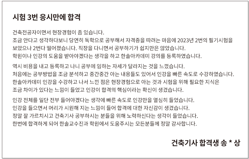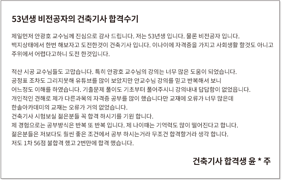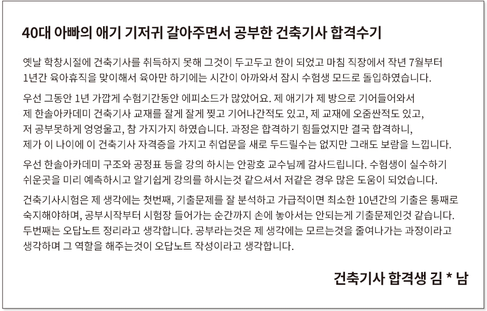 · 30대 후반 비전공자 건축기사 최종합격 ..무려 3번만에 붙었습니다.