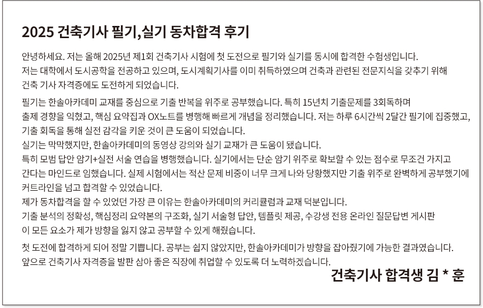 · 이 * 현 : 2025년 1회 건축기사