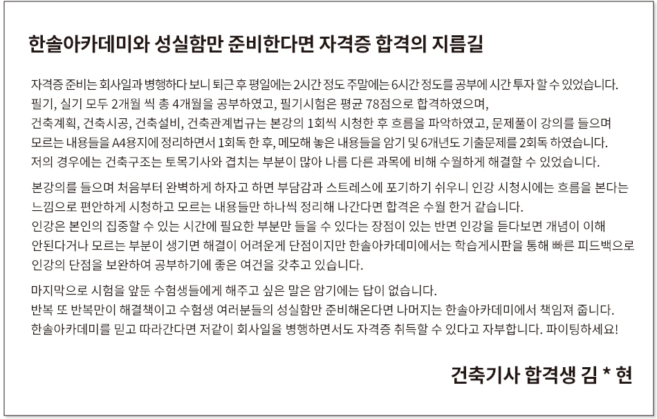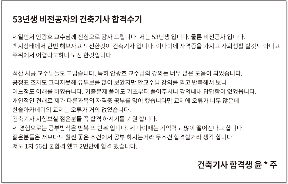 · 30대 후반 비전공자 건축기사 최종합격 ..무려 3번만에 붙었습니다.