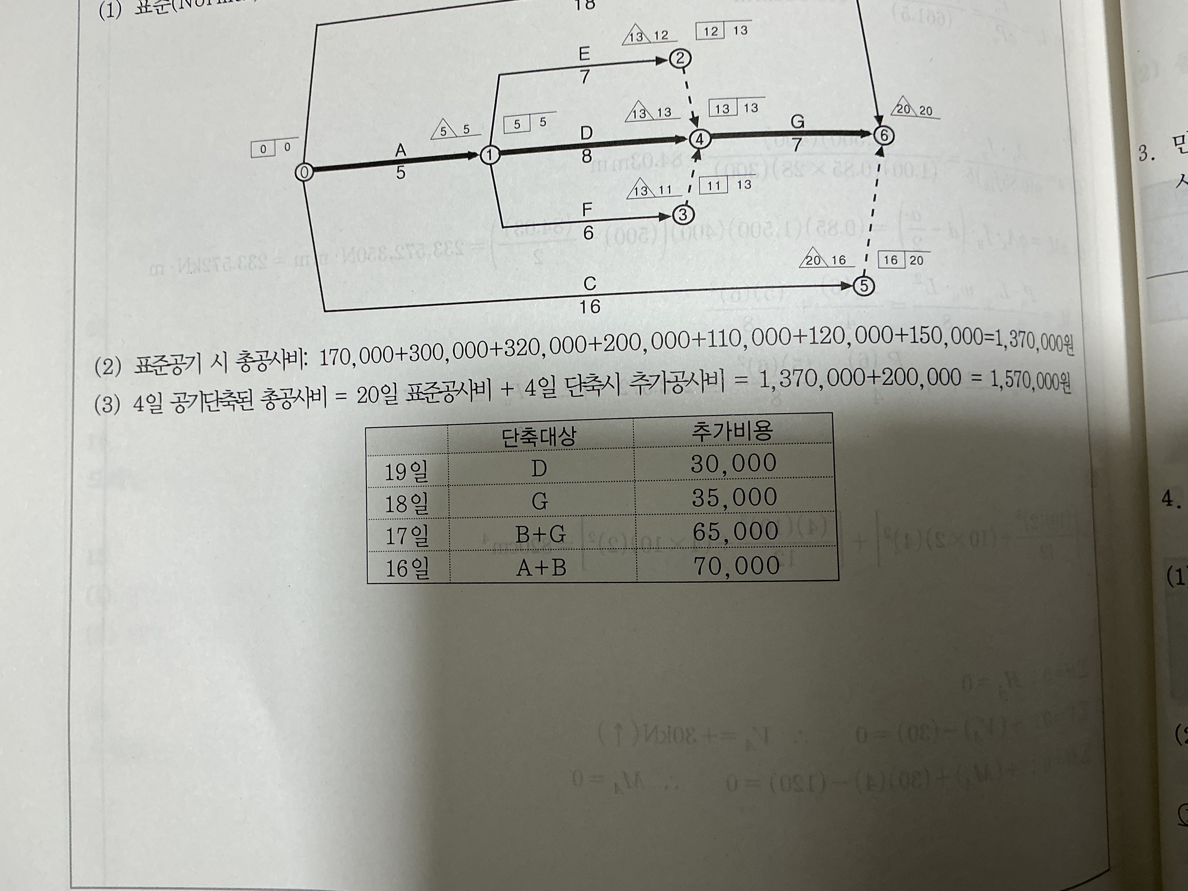 2023년 4회 26번 공정표 공기단축 총비용 계산 문제인데요