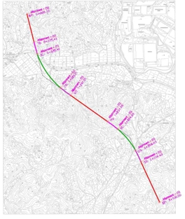 실기문제에 터널과 교량구간이 포함되도록 설계하라고 했는데 첫번째 사진 내의 초록색 부분이 각각 터널과 교량 구간인지 궁금합니다. 포함되도록 설계하라고 하면 구간을 저 그림처럼 나누고 레이블을 각각 터널과 교량으로 작성하면 되는 것인지 풀이가 궁금합니다. 감사합니다.