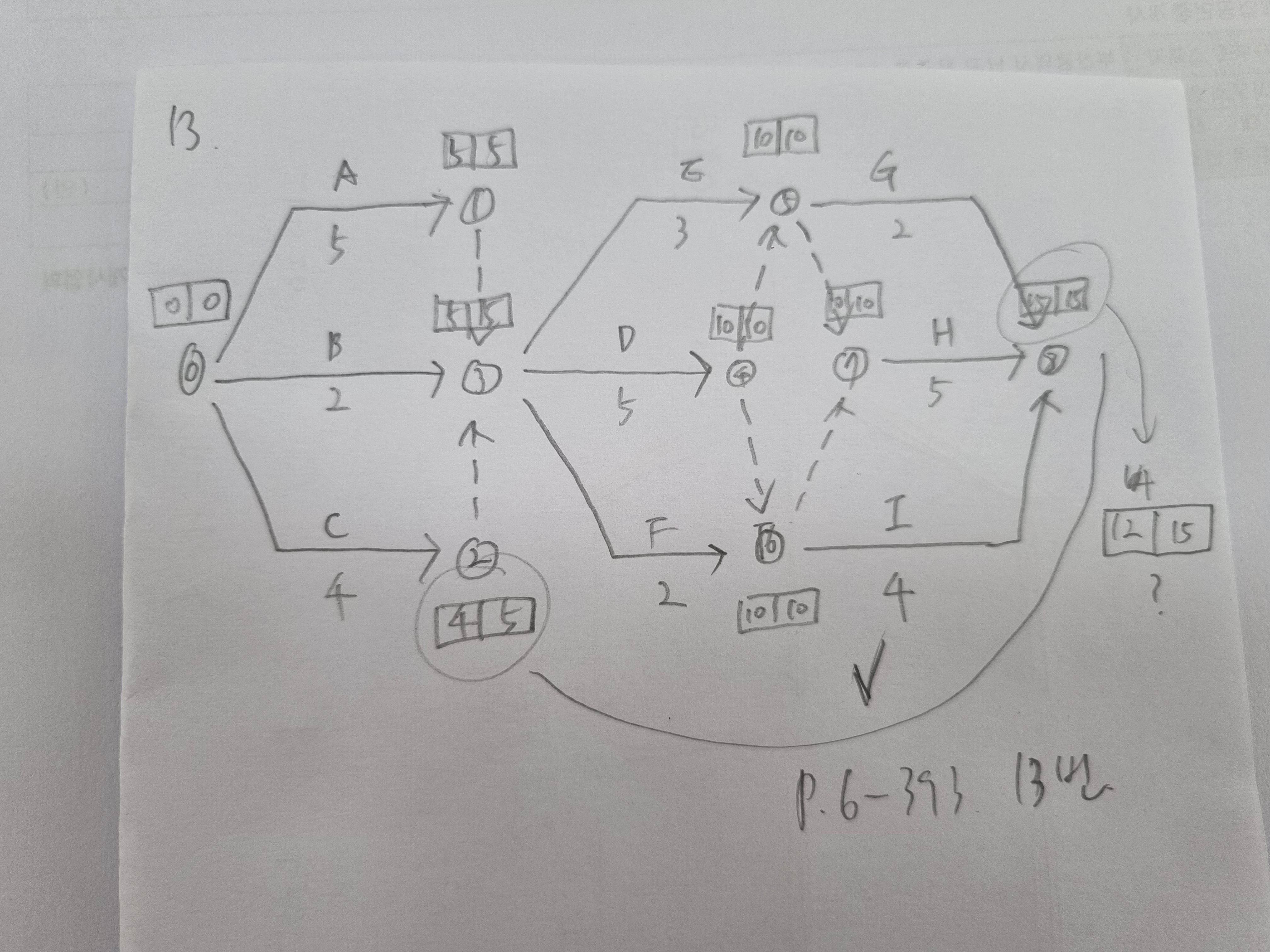 해당 조건에서 제시한 공정표를 작성하고 계산공기가 20일이 나왔다고 가정해봅니다.