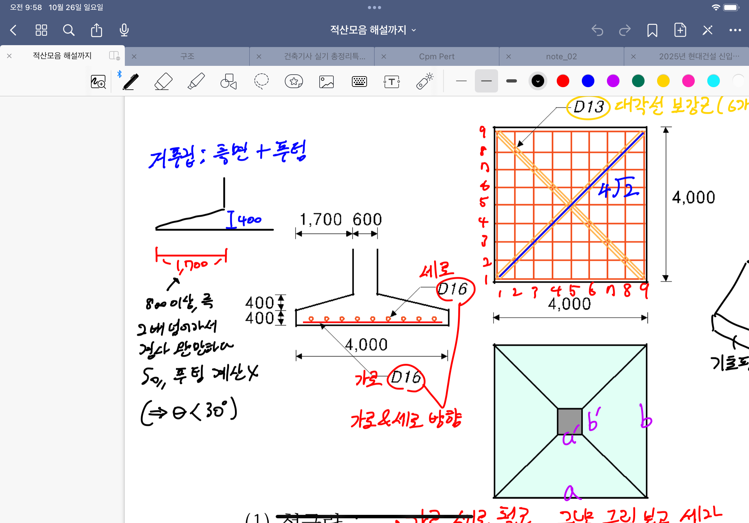 독립기초 경사부분의 각도는 크게 중요하지 않습니다. 그 이유는 시험에서는 각도가 주어지지 않고 각 부분의 치수가 주어지기 때문입니다.