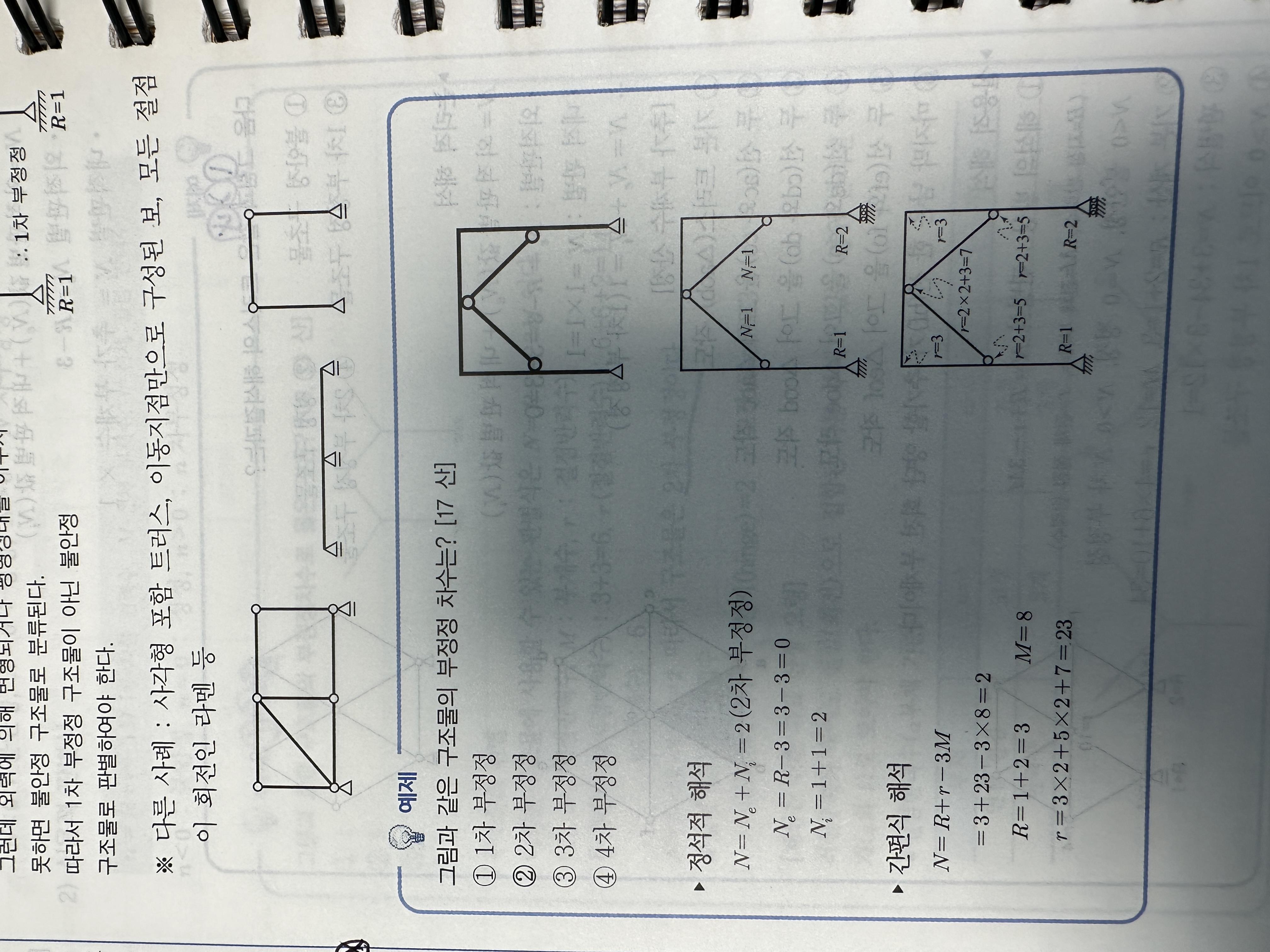 r=2*2+3=7 이라 되어있는데 2*1+2*3 아닌가여? 핀절점이 1개 강절점이 2개라 생각되는데 핀절점이 2개 강절점이 1개라 하신것같아요 이부분이 이해가 안되요.
