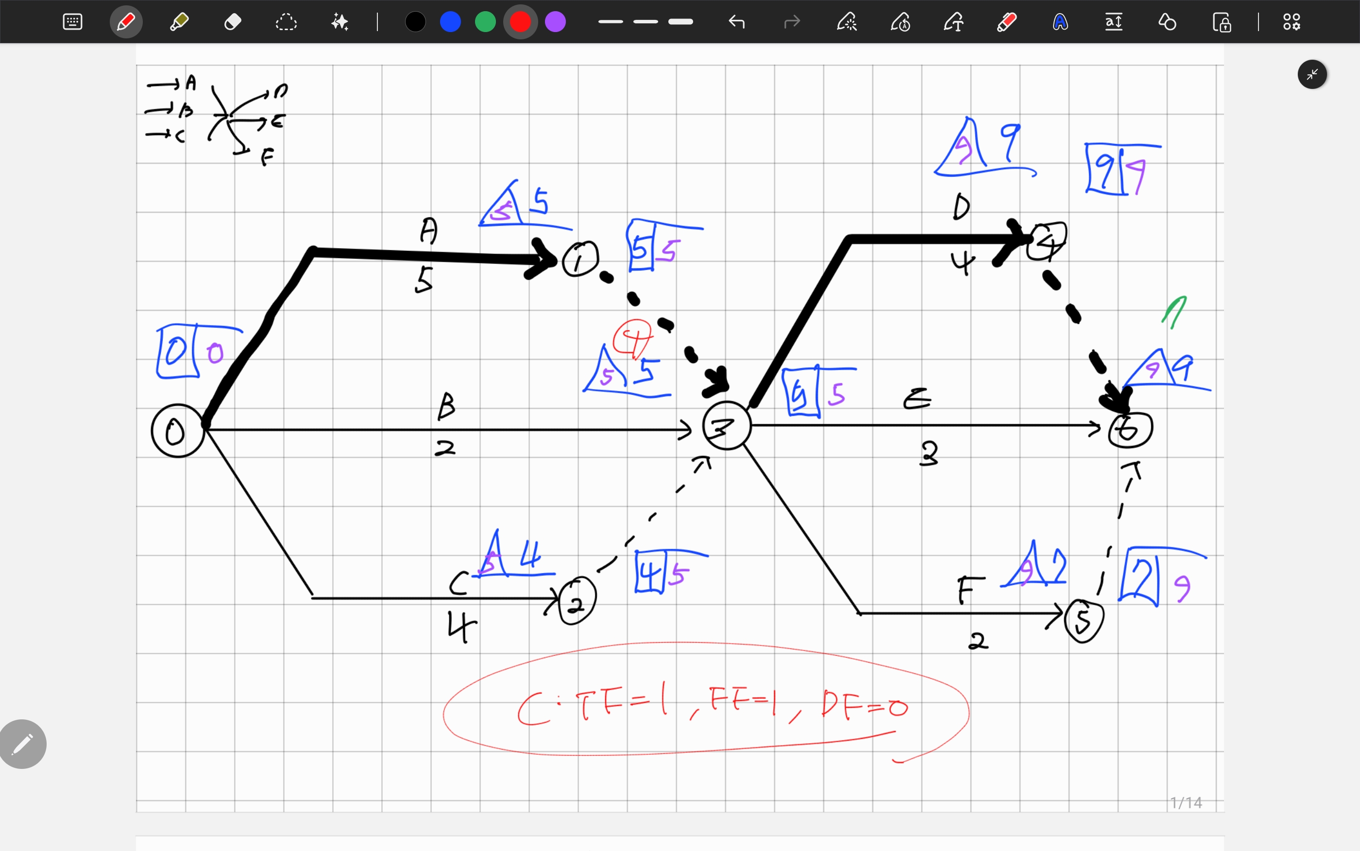 첫번째 그림에서 발생한 4개의 더미는 모두 넘버링더미(Numbering Dummy)입니다. A의 여유계산은 반드시 3번, C의 여유계산은 반드시 4번, D의 여유계산은 반드시 6번, F의 여유계산은 반드시 6번에서 해야만 합니다.
