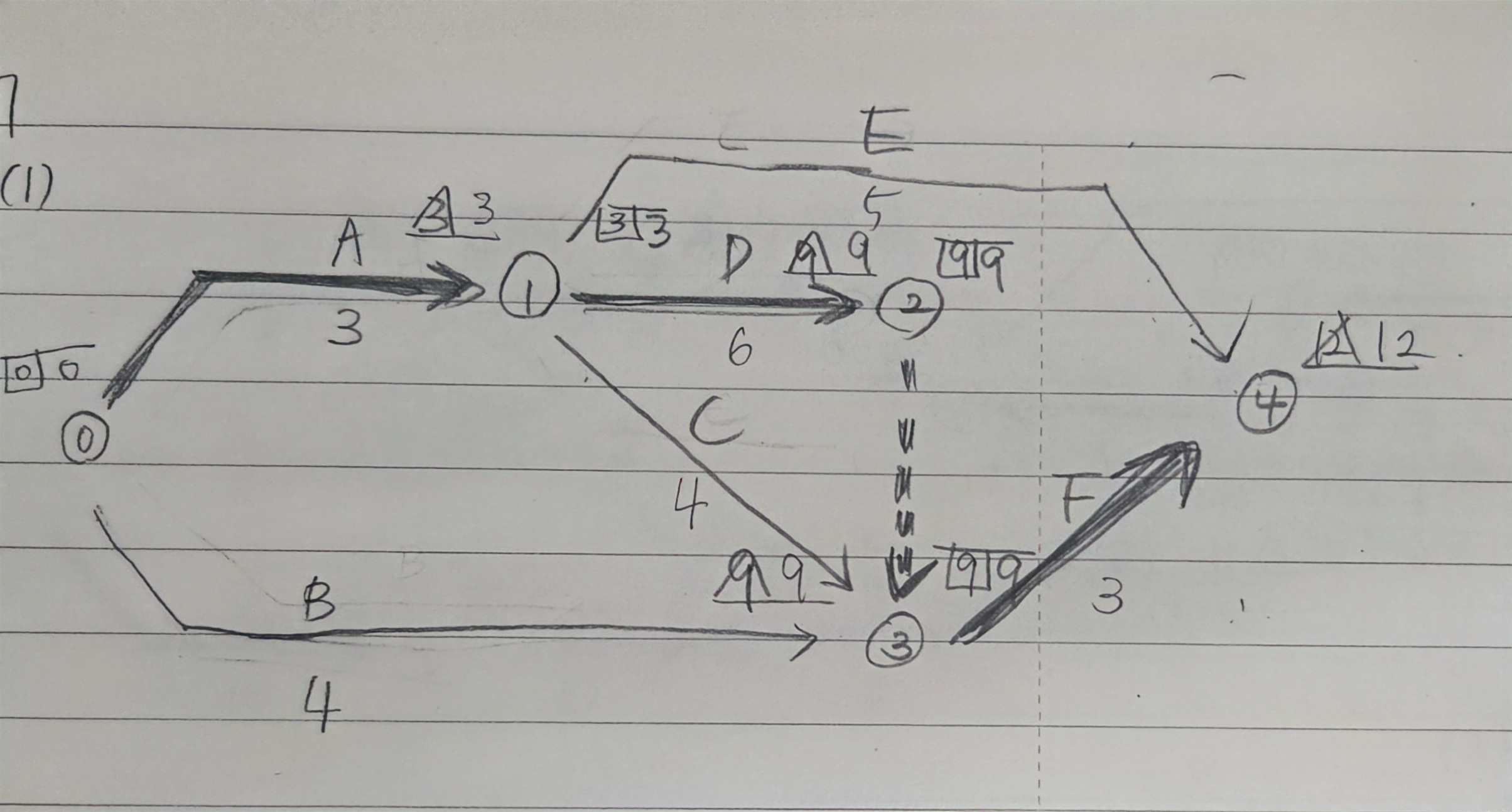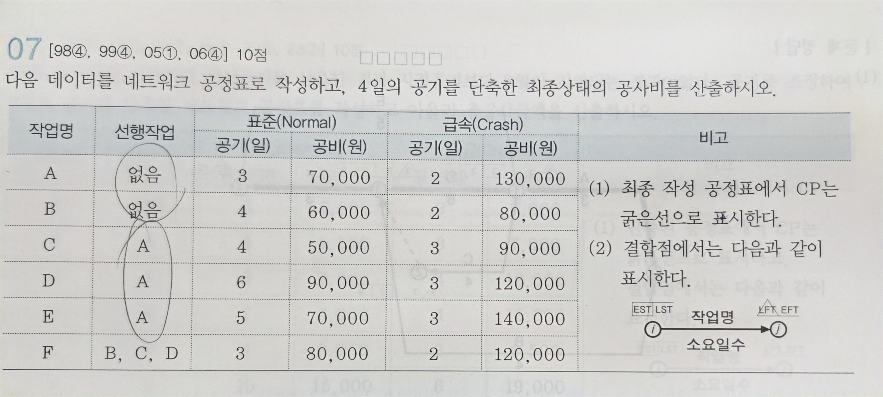 책 답과 결합점 2,3번이 달라서 책 답지 결합점 2번(9,7,7,9)와 같은 숫자가 나오지 않습니다. 제가 그린 공정표도 답이 될 수 있을까요? 알파벳순으로 결합점 번호를 매겨야 할까요?