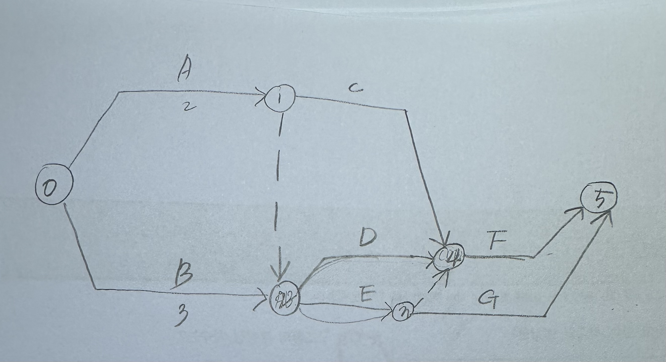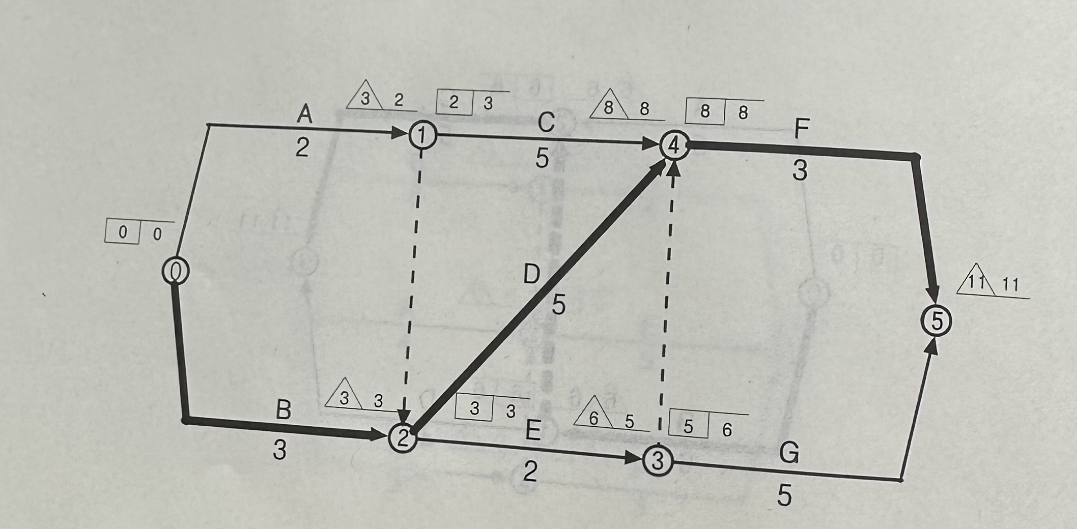 건축산업기사 실기 The Bible P.278 공정표를 작성했는데, 교재 정답과 형태가 다르게 나왔습니다.