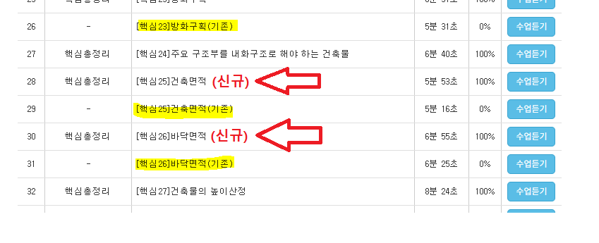 해당 과정내에서 (기존)/신규로 분리되어있습니다. 아래 사진을 참고하시어 신규강의로 수강해 주시기 바랍니다.