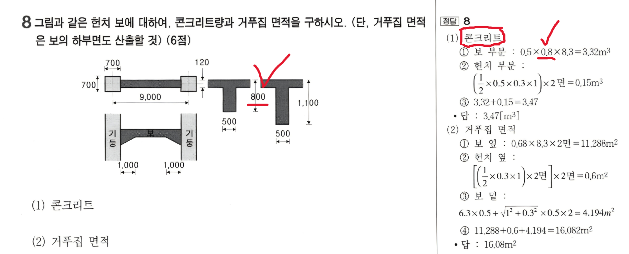 콘크리트량 구할 때 보의 높이 0.8을 그냥 대입하는데