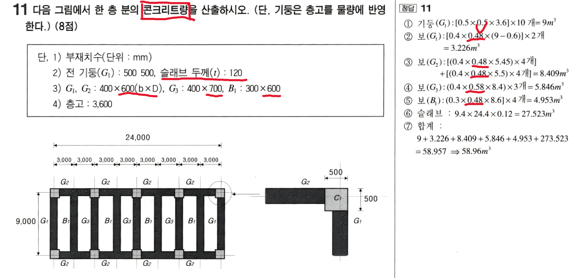 근데, 다른 문제에서는 (한 층분의 콘크리트량 구하는 그 문제)