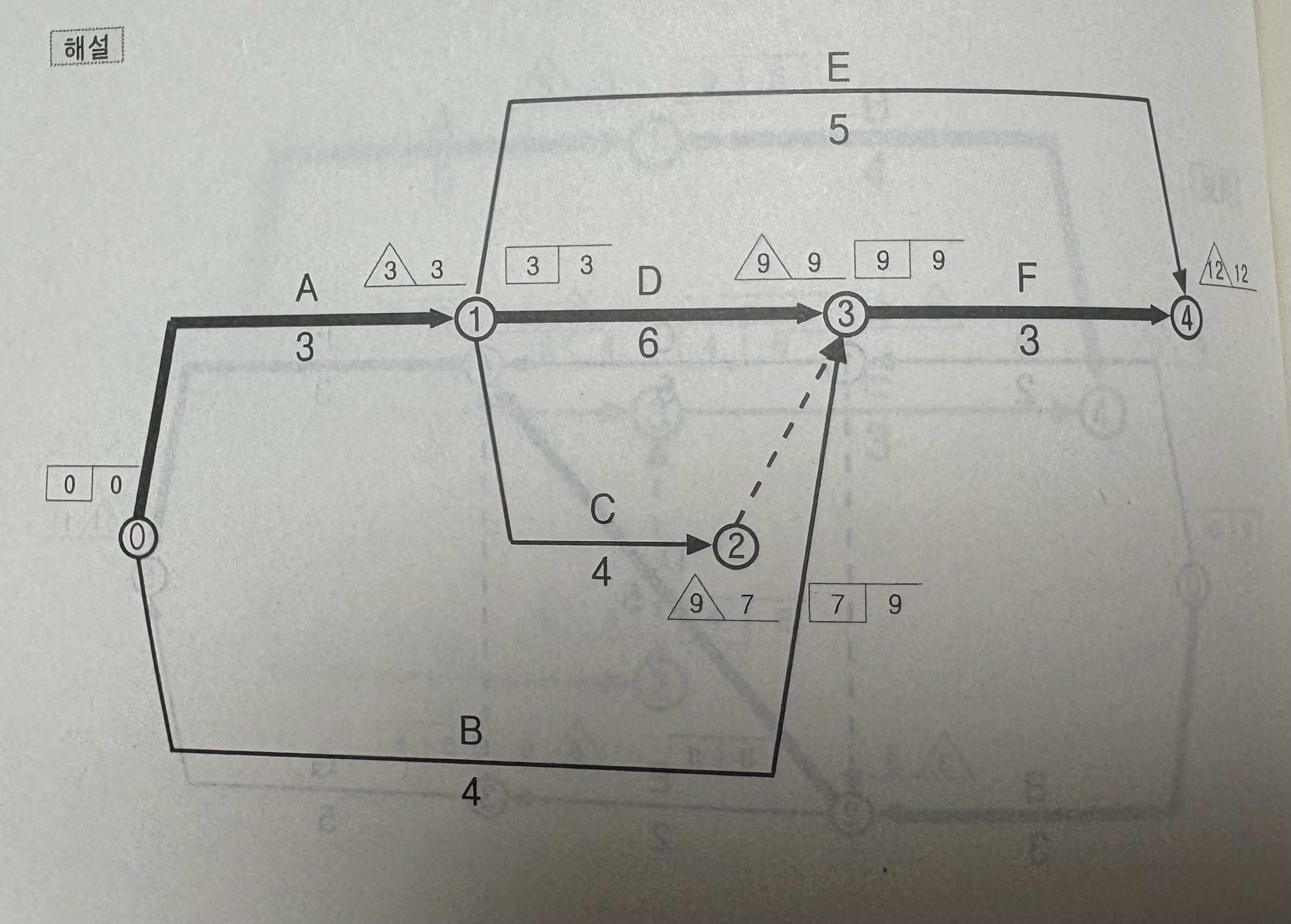 교재 답안 그림상에서 3번 이벤트에 B, C, D 화살표를 모아 보면 그곳이 B,C,D가 만나는 곳이 됩니다.