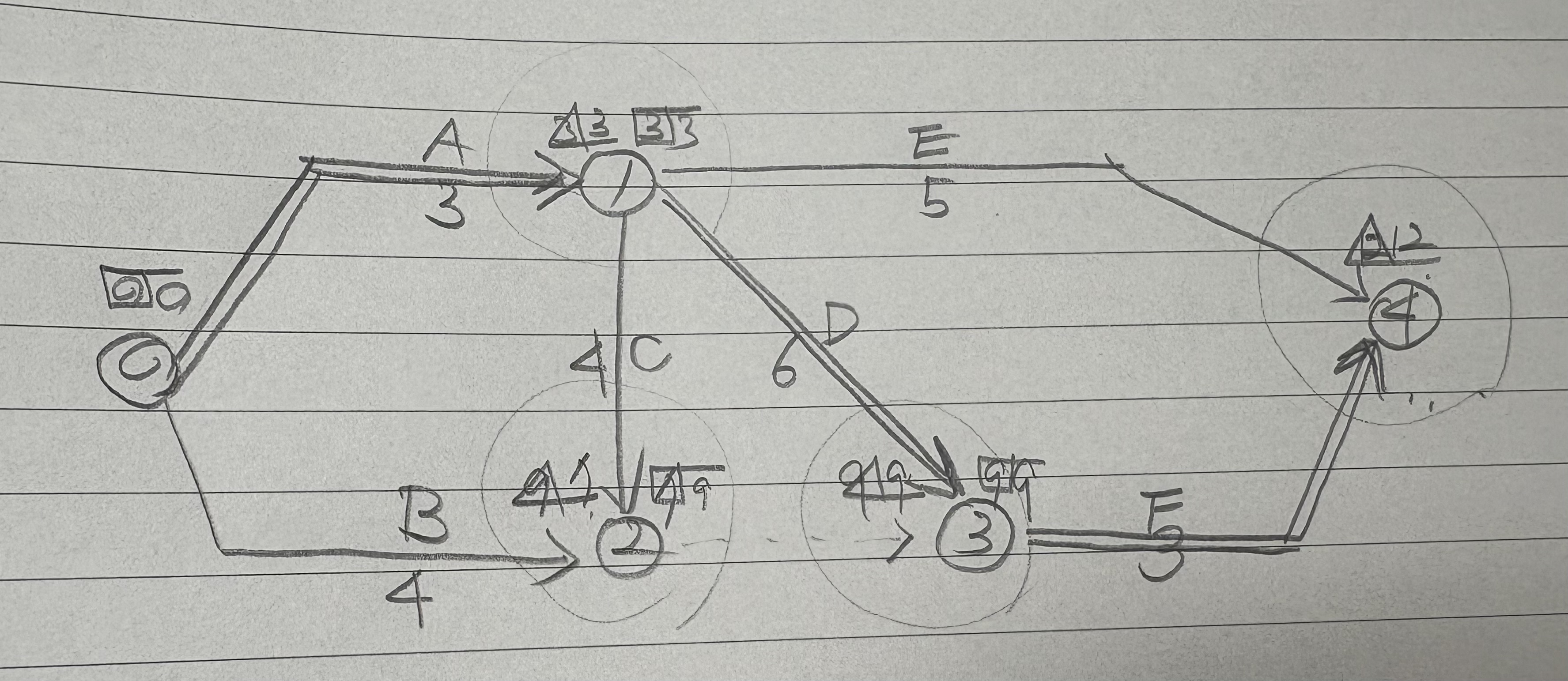 학생이 그려낸 지금과 공정표는 C와 D가 넘버링 더미로 처리되지 않았음을 관찰해주시면 되겠습니다.