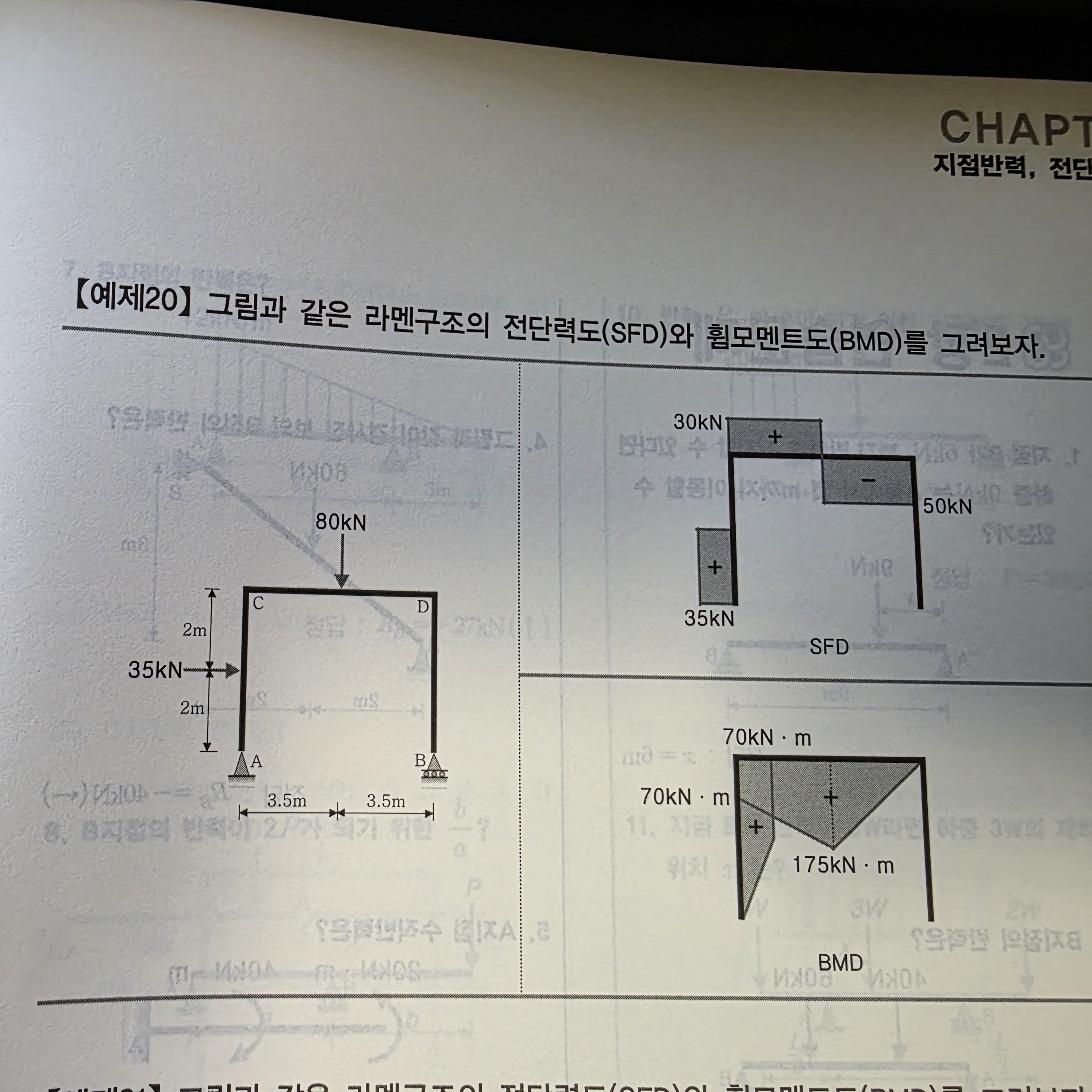 늘 말씀드리지만 B점반력을 구하려면 A점에 기준을 잡고, 모멘트를 계산하면 35×2+80×3.5-VB×7=0 ∴VB=50 입니다.