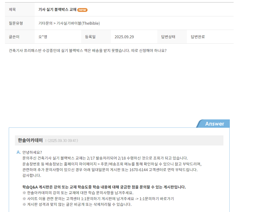 ※ 한솔아카데미의 강의 또는 교재에 대한 학습 문의사항을 남겨주세요.