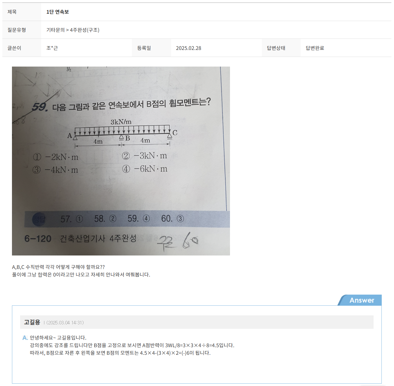 안녕하세요 교수님첫번째 사진 해설에서 L 의 값이 5 이어야 하는 거 아닌가요?두번째 사진은 비슷한 문제에 다른 교수님께서 답변해주신 내용인데, L 값을 한 스팬만 보고 있거든요,