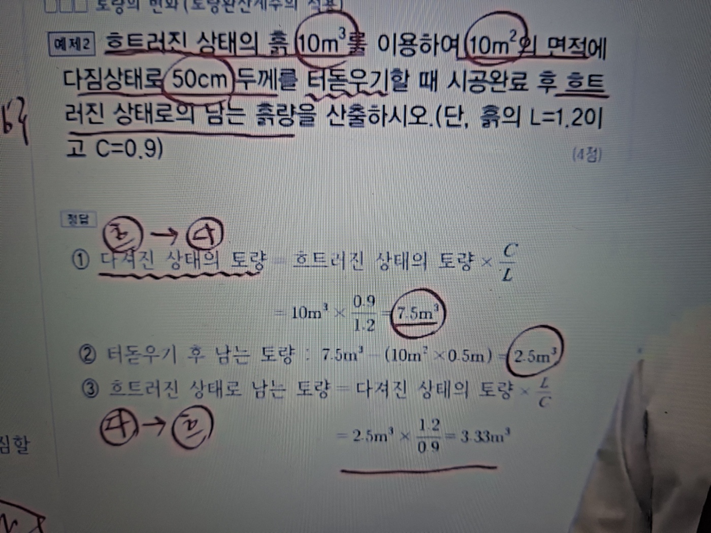 2번 게산하려는데세제곱제곱 m 계산이안됩니다다단순히 7.5-(10곱하기 0.5)=2.5세제곱미터가아니네요 공학용계산기 계산법모르겠어요 ㅠㅠ