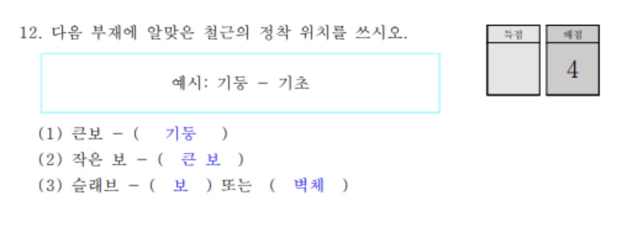 슬래브 정착철근 보 , 벽 은 벽체라고 안해서 틀리겠죠?