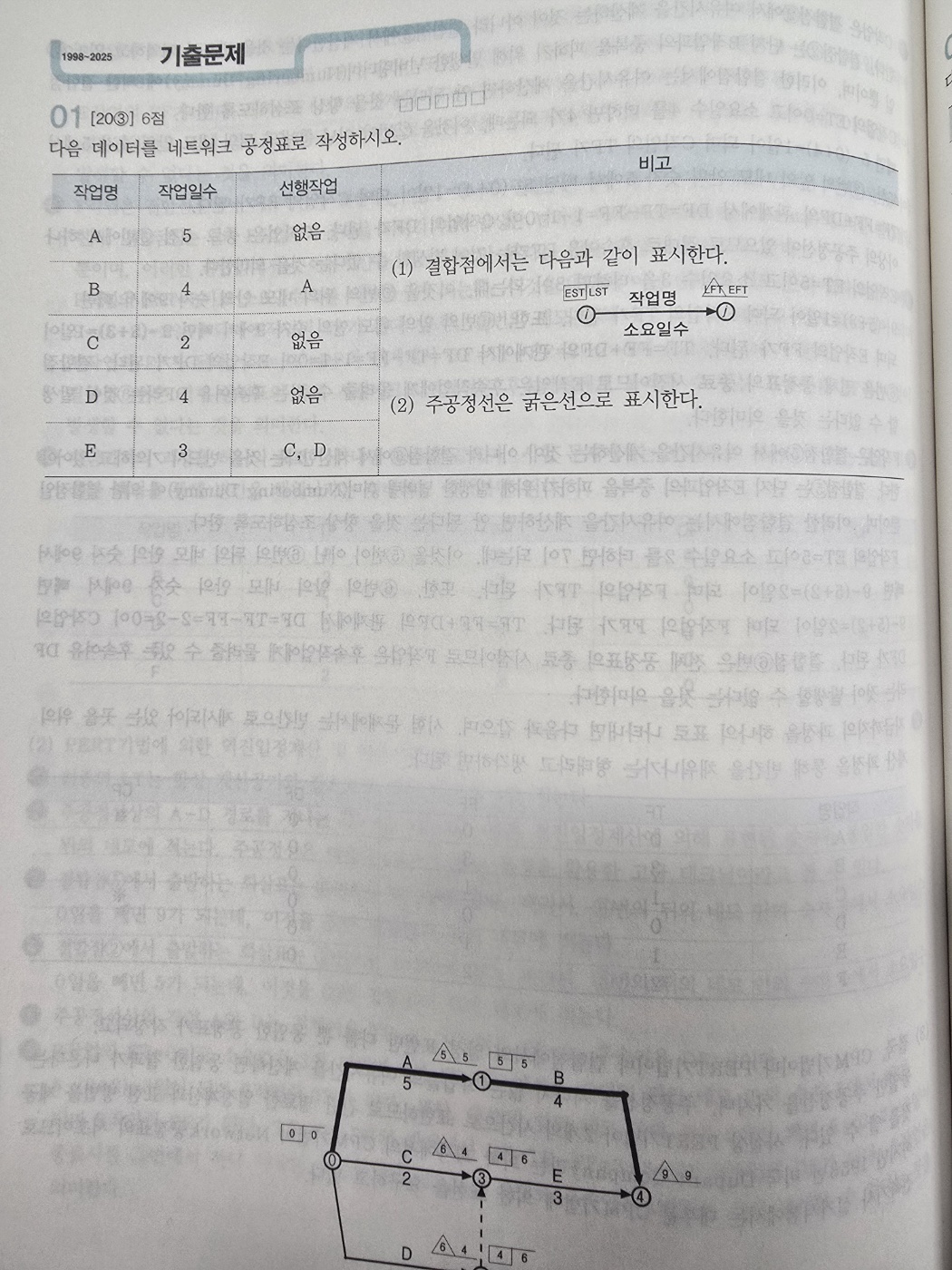 기사실기 바이블교제 428p 01번문제 네트워크공정표 질문입니다.