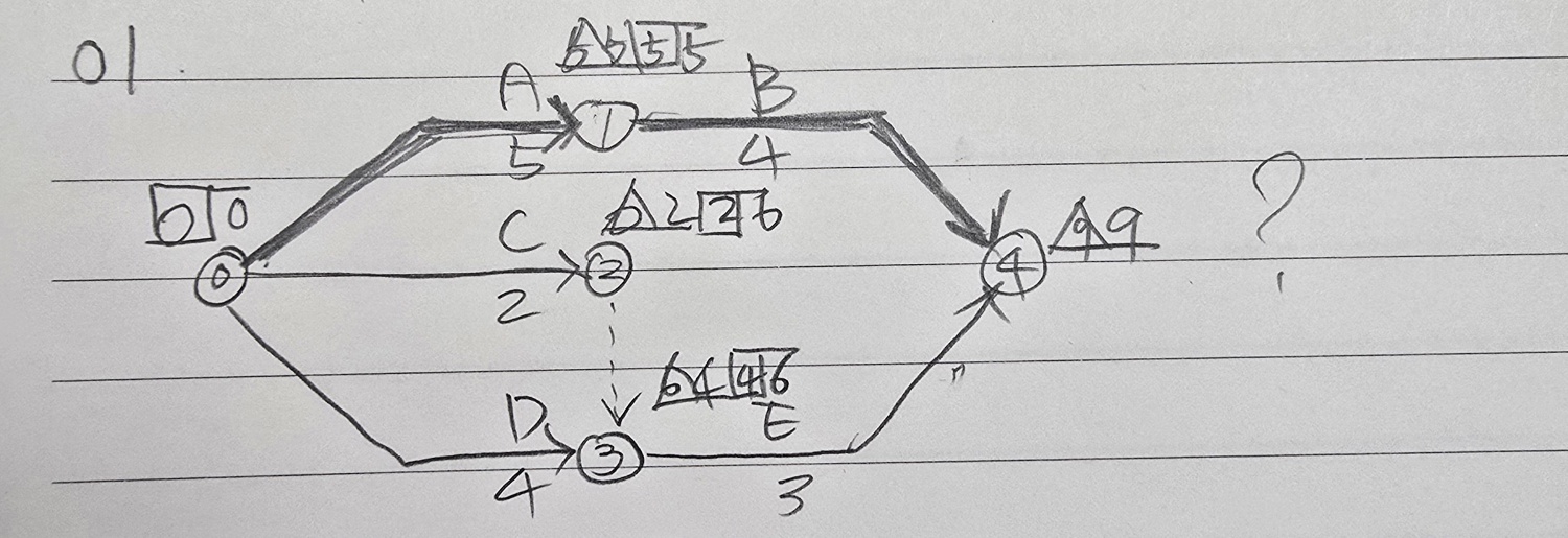 문제집과는 반대로 작업명c에서 작업명D로 더미를 주었더니 LST와 LFT가 4일이아닌 2일이 되었습니다.