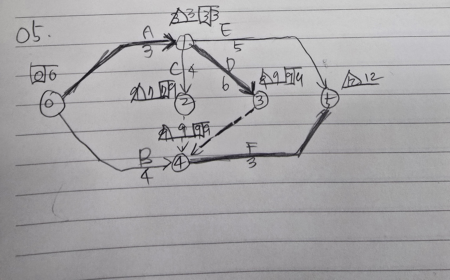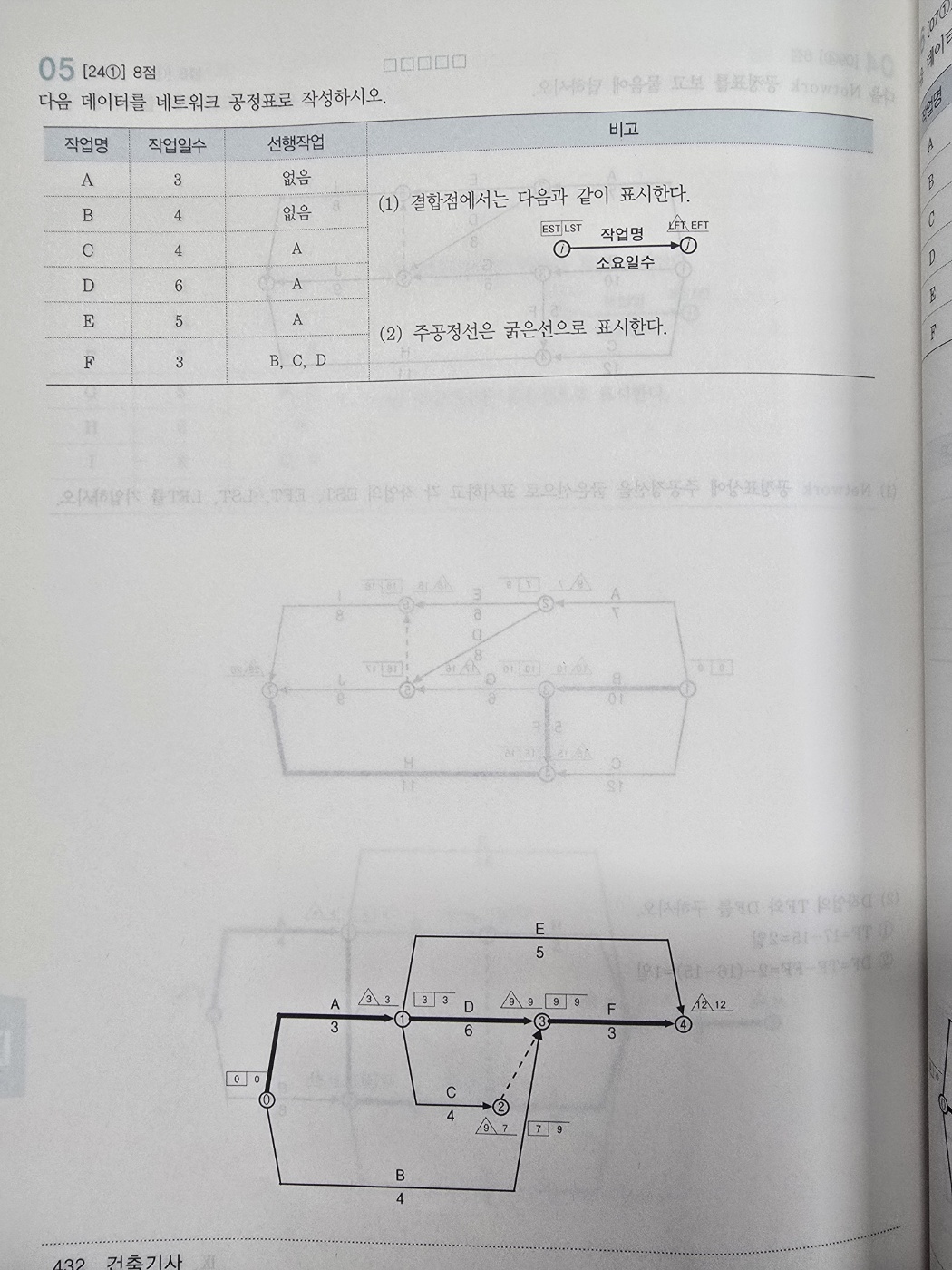 기사실기 바이블교제 432p 05번문제 네트워크공정표 질문입니다.