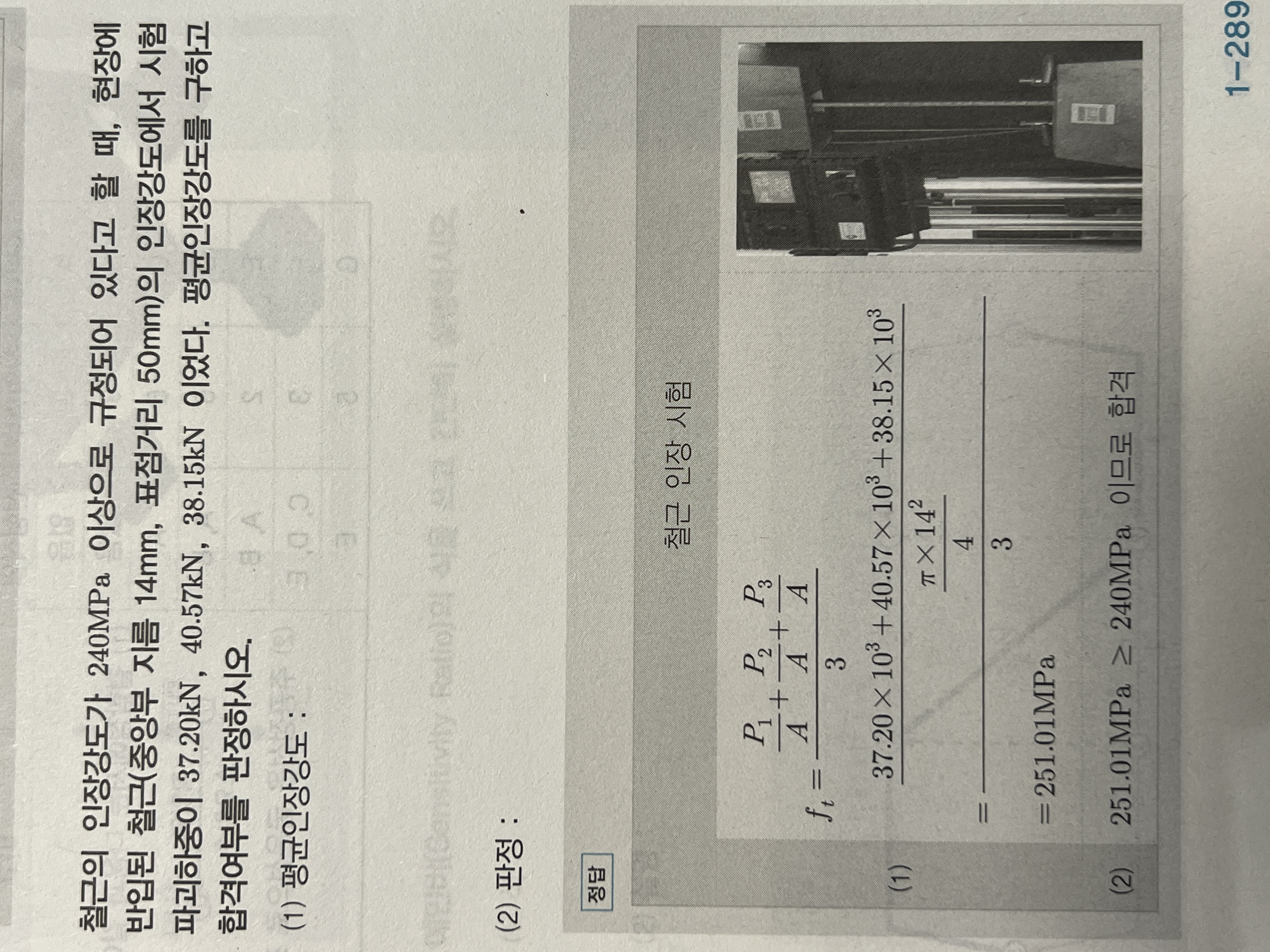 단계 3: 설계기준강도(또는 규정값)와 비교하여 합격 여부를 판정한다.
