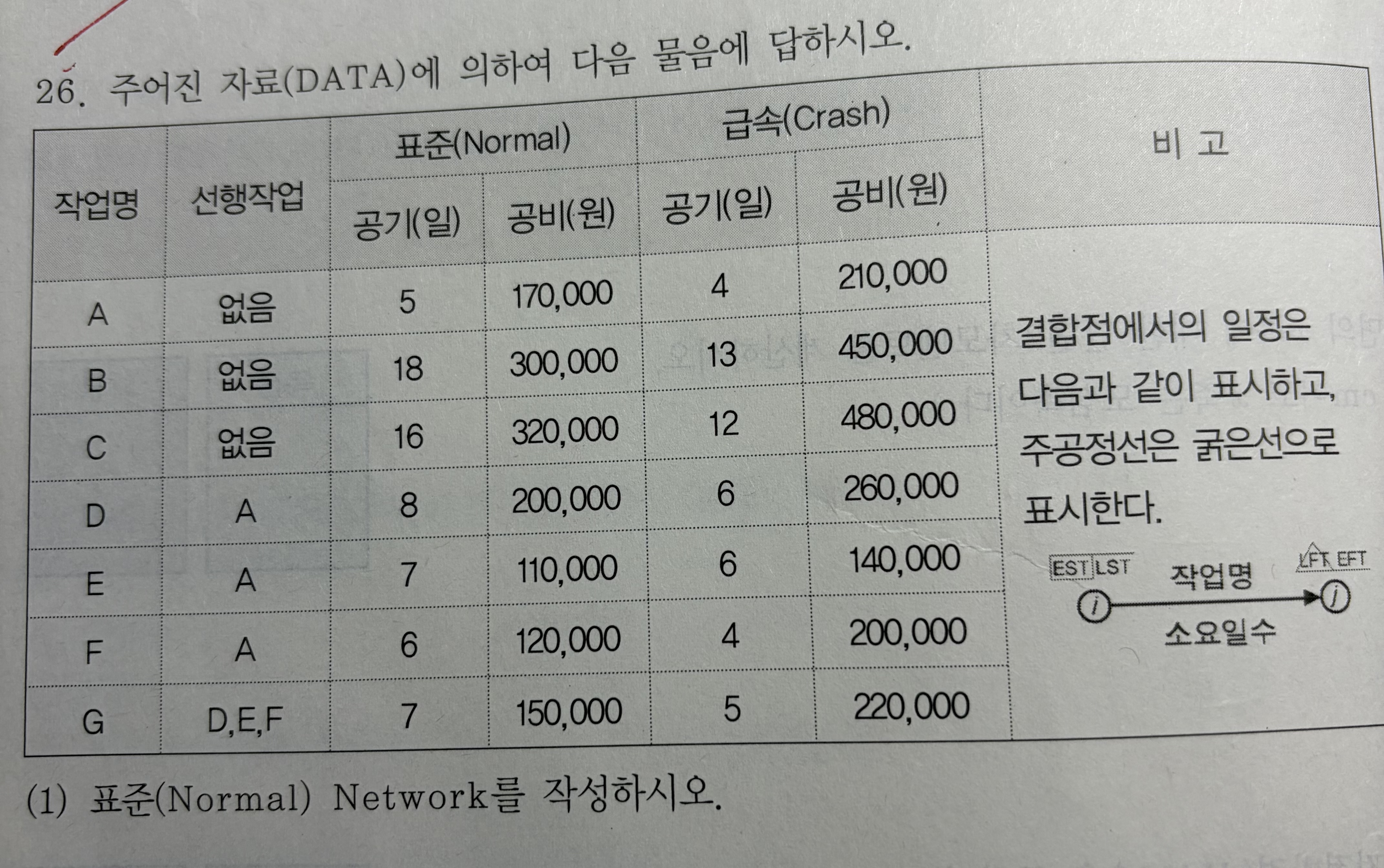 공정표는 하나만 답이 되는 경우는 거의 없으며 그려내신 공정표도 맞는 공정표입니다.