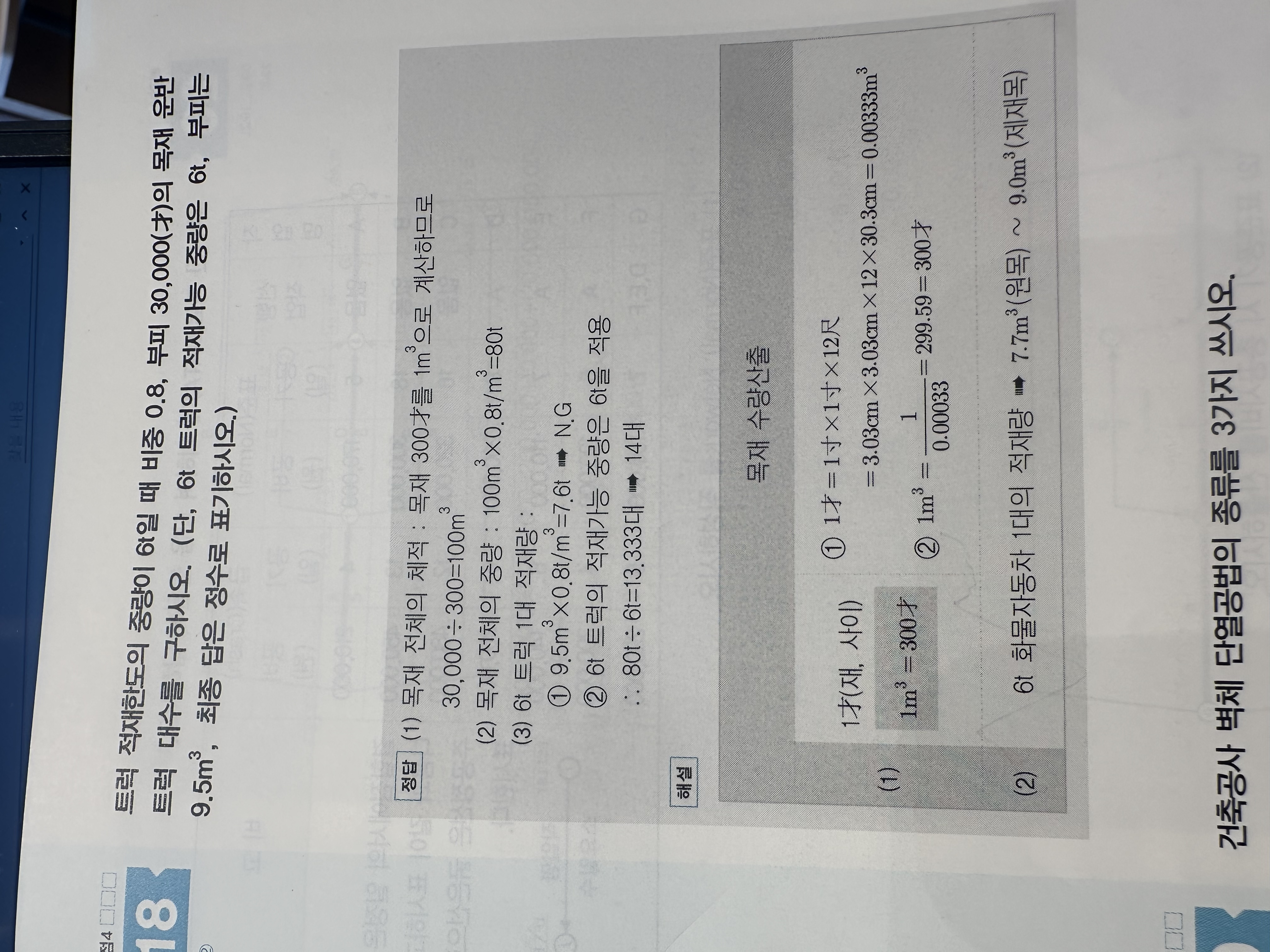 해설에서 NG라고 표현한 것은 트럭 1대의 적재가능한 부피를 기준으로 계산하면 트럭에 적재하는 무게가 7.6t이 되므로 적재가능한 중량 6t을 초과하게 되어 트럭에 적재할 수가 없어서 더 많은 트럭대수가 필요하게 된다는 의미입니다.