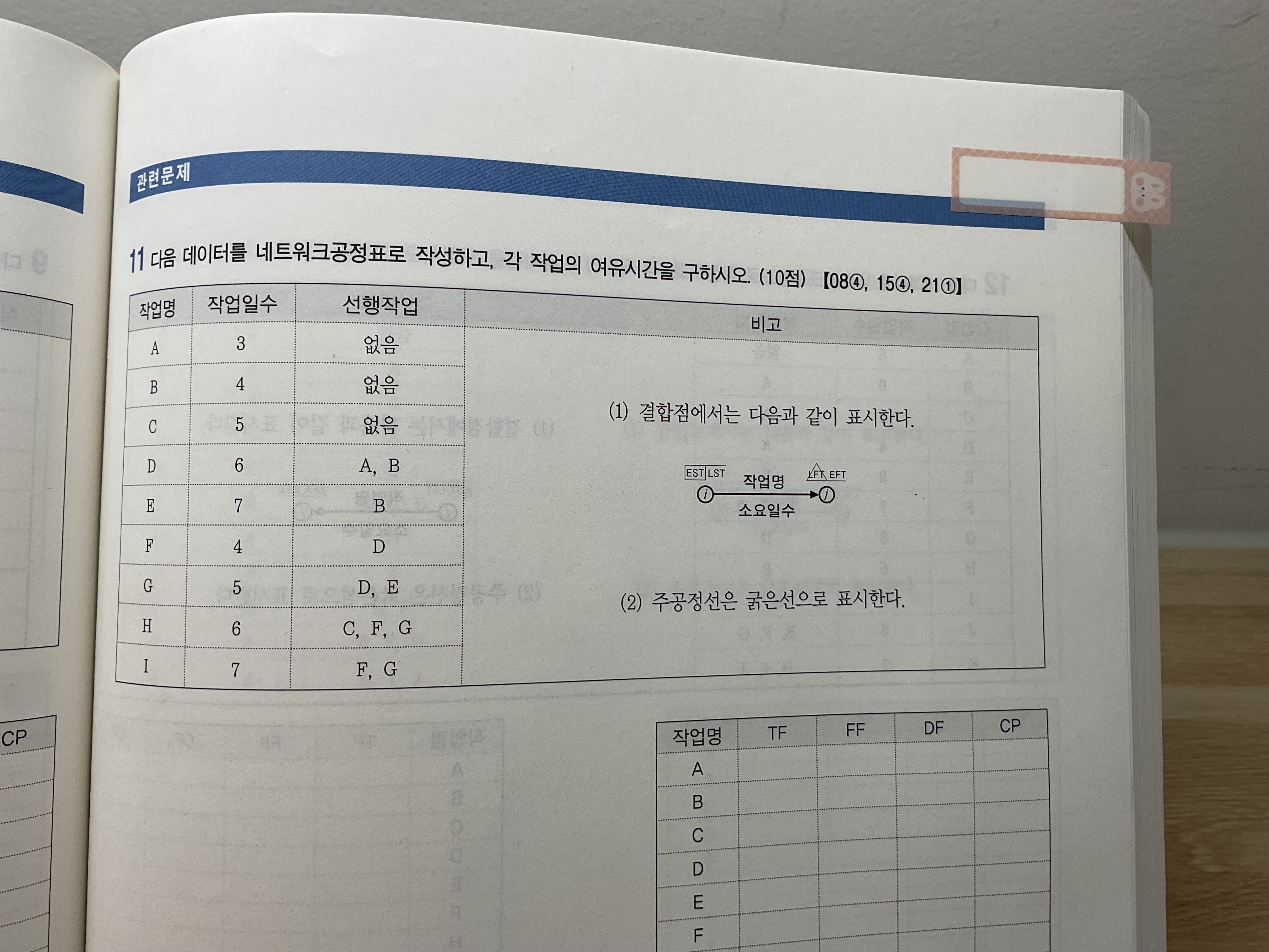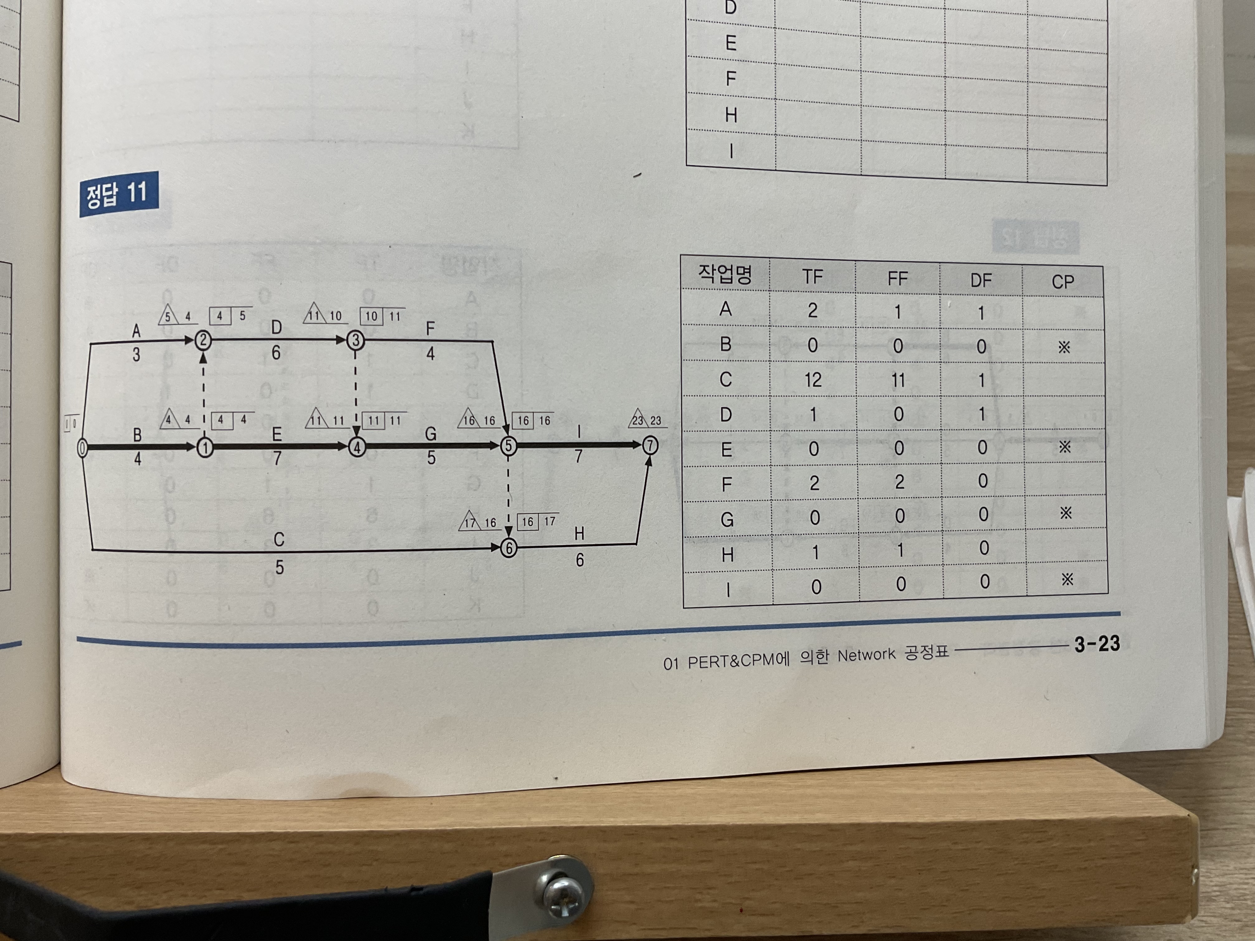 오직 이 경우에만 해당작업의 여유시간 계산은 바로 다음의 이벤트에서 계산한다고 기억해두시고, 나머지 경우는 해당 작업의 종료이벤트에서 여유계산을 합니다.