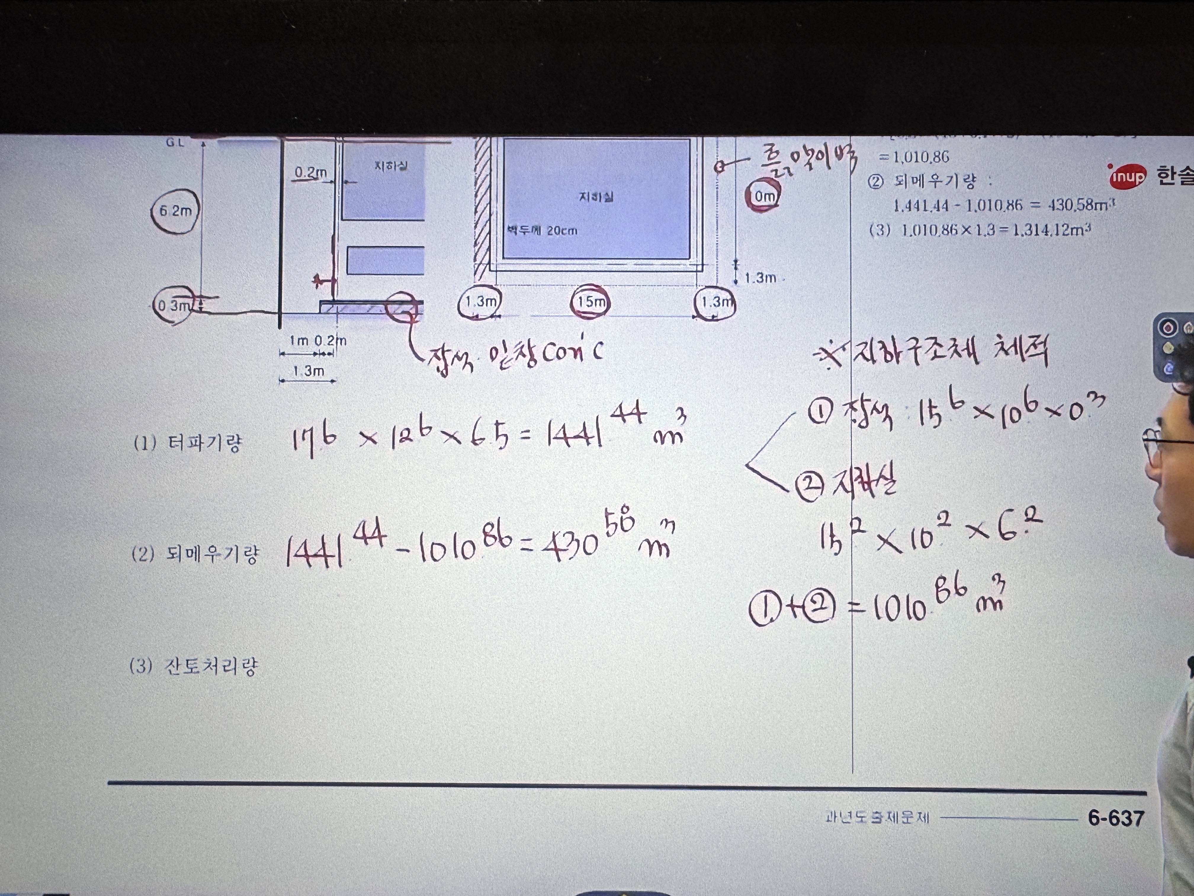 안녕하새요. 밑창 콘크리트도 계산 해야되는거 맞나요? 해설에서 안 하셨길래 여쭙습니다