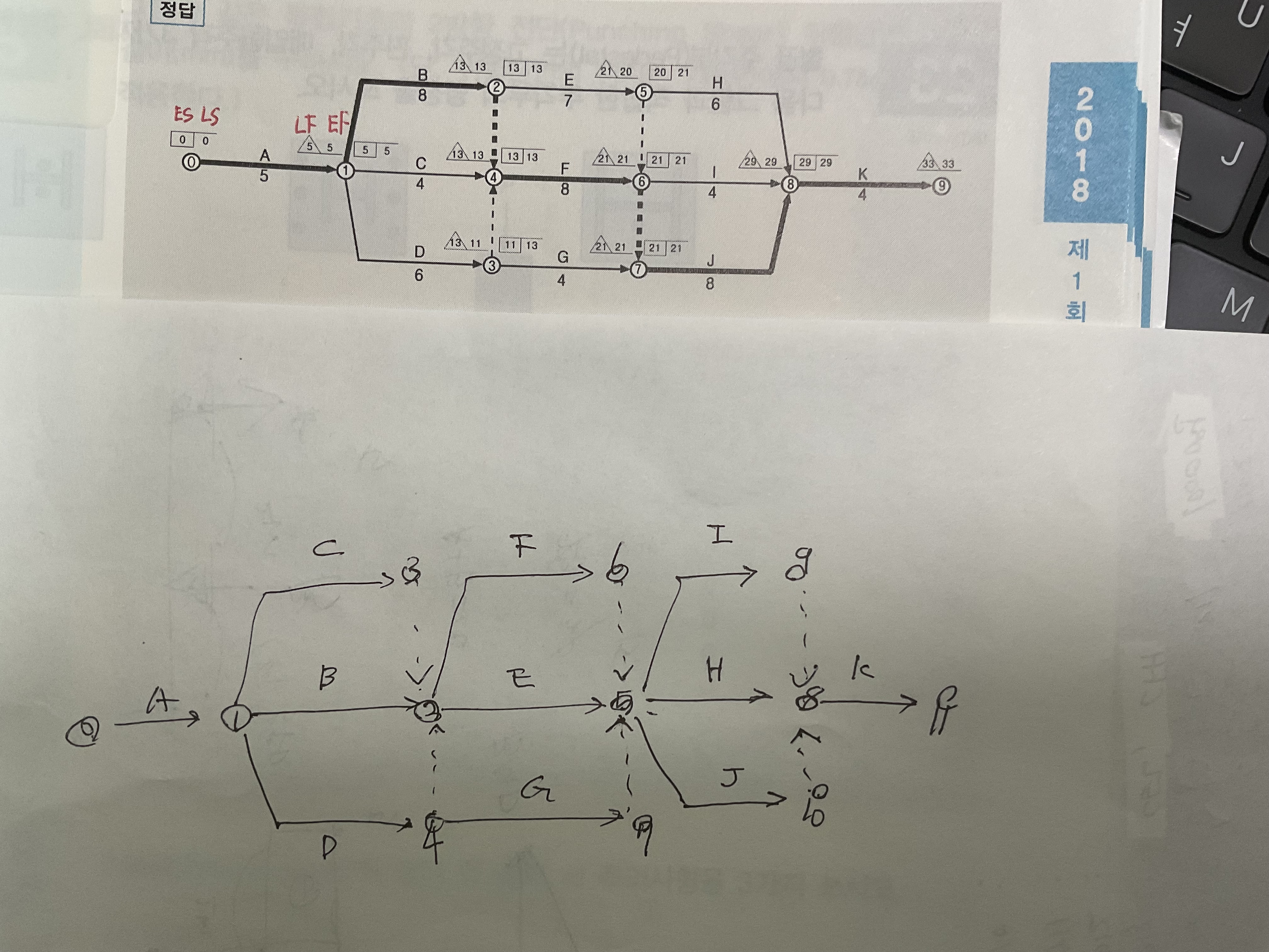 이 문제의 데이터의 관계는 더미의 개수가 4개가 나오는 관계를 제시한 것이며, 4개보다 많거나 4개보다 적다면 잘못 그려진 공정표가 됩니다.