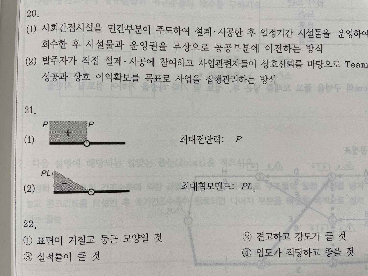 최대전단력, 최대휨모멘트 답안 작성 시에 원래 답안은 P, PL₁이지만,
