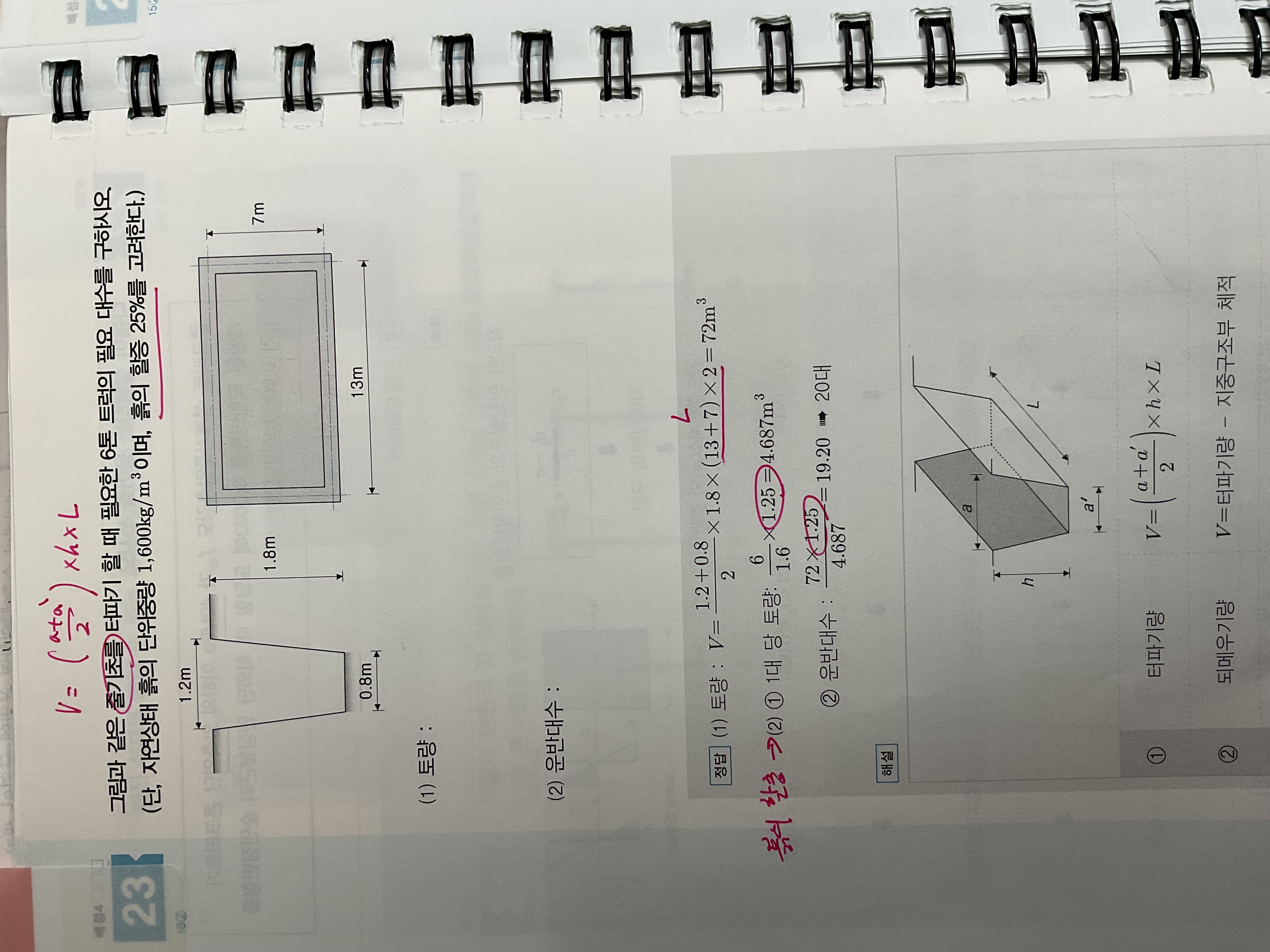 안된다면 원래 풀이에 흙 할증을 왜 토량에도 곱하고 운반대수에도 곱하는지 알려주시면 감사하겠습니다.