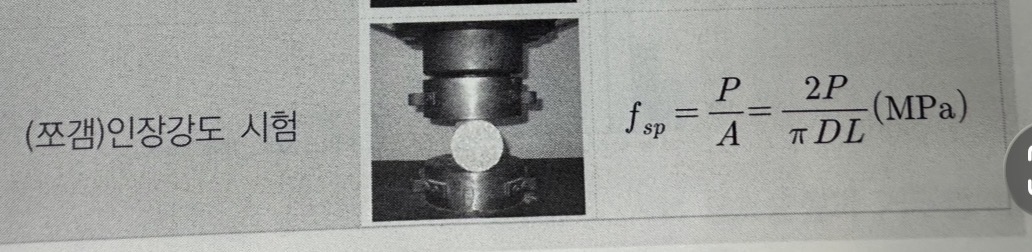 시험의 명칭을 물어본 것이므로 [쪼갬인장강도시험] 이 정확한 답안이 될 것이며, 채점관의 성향에 따라 일본식의 할렬(割裂)인장강도시험, 영어식 표현인 split 의 의미 정도까지도 답안이 될 수 있다고 판단되며, 나머지 답안들은 득점되기 어렵겠습니다.