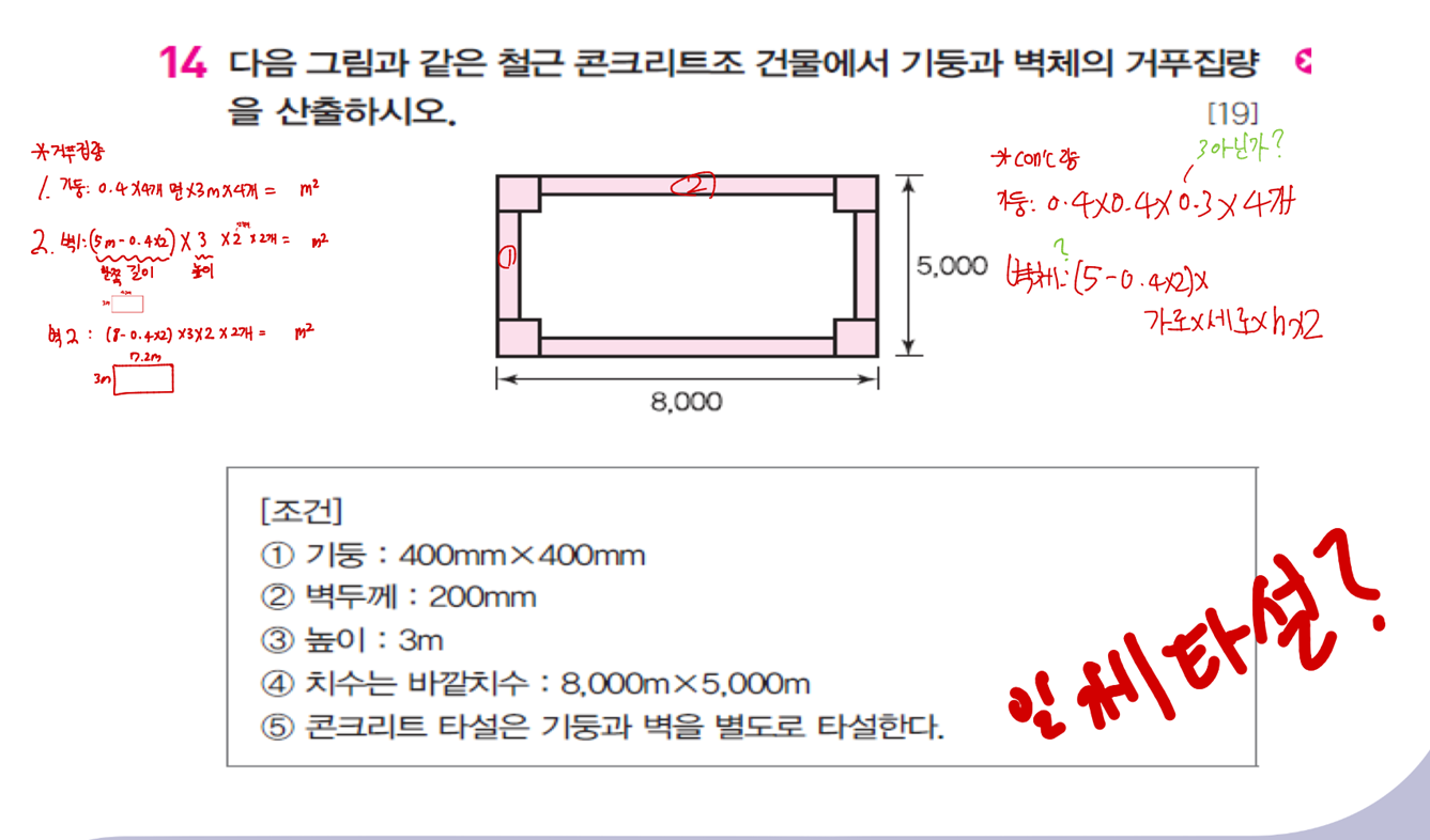 이러한 이유로 부재가 만나는 부분은 공제하지 않고 계산하며 정미량으로 산출하는 방법을 사용하는 것입니다.