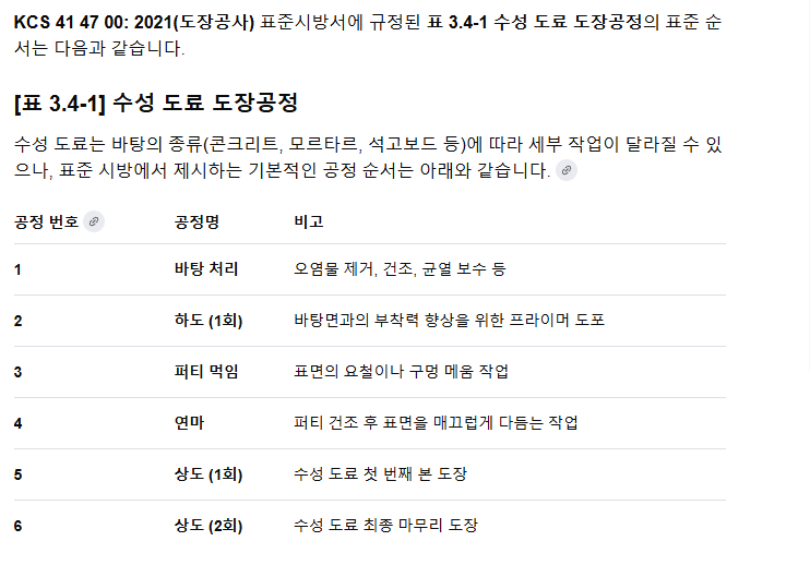 KCS 41 47 00 (수성 도료 도장)표준 공정 순서