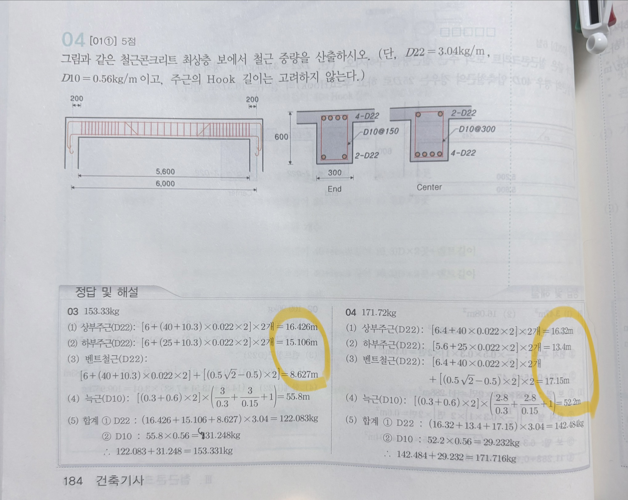 실제 건축기사 실기 시험에서는 적산 문제를 풀 때