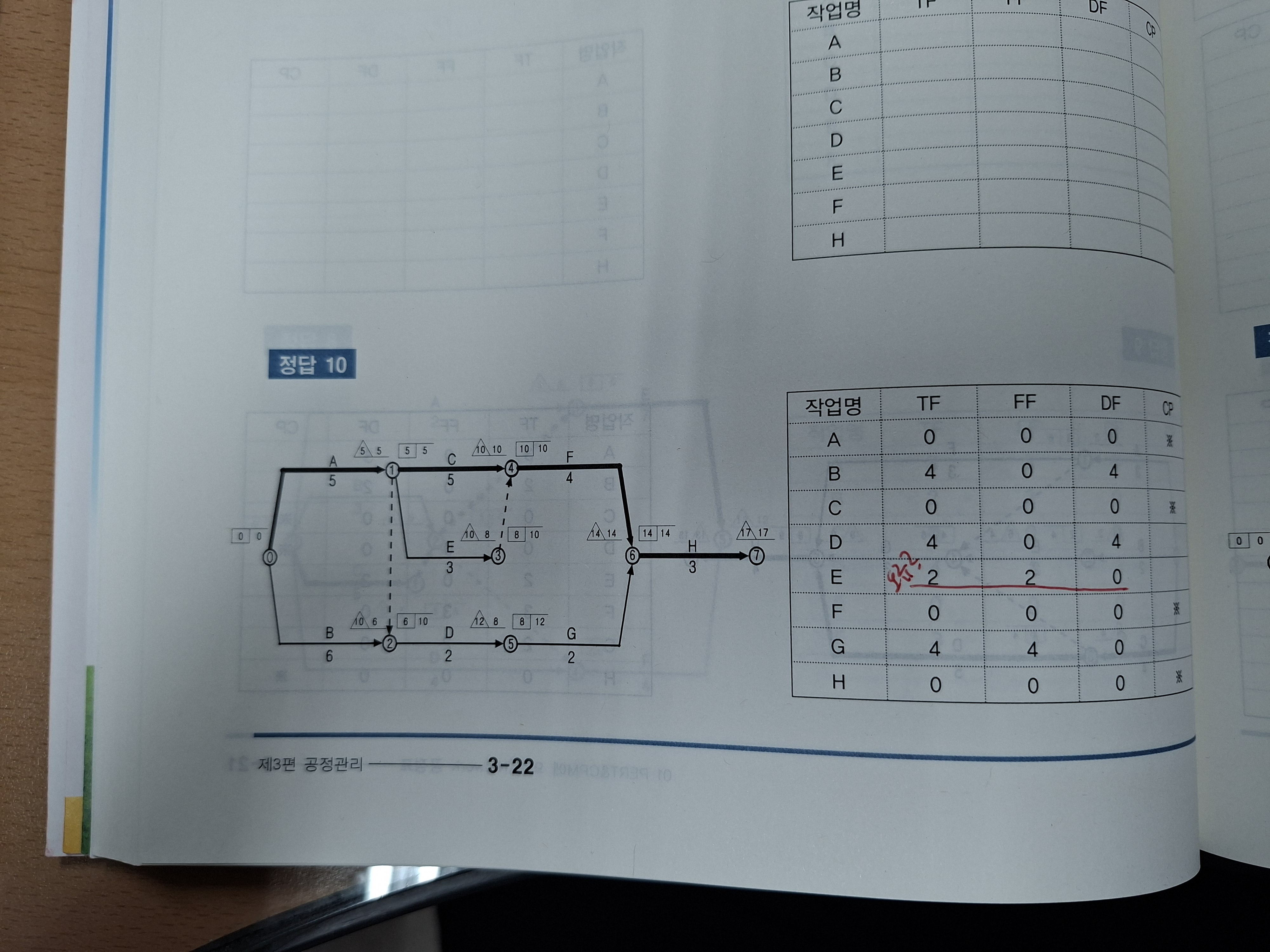 오직 이 경우에만 해당작업의 여유시간 계산은 바로 다음의 이벤트에서 계산한다고 기억해두시고, 나머지 경우는 해당작업의 종료이벤트에서 여유계산을 합니다.