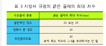 무근콘크리트에 해당이 됩니다. 단면이 큰 경우보다 무근의 경우굵은골재 최대치수가 클경우 마감에 문제가 될수 있습니다.