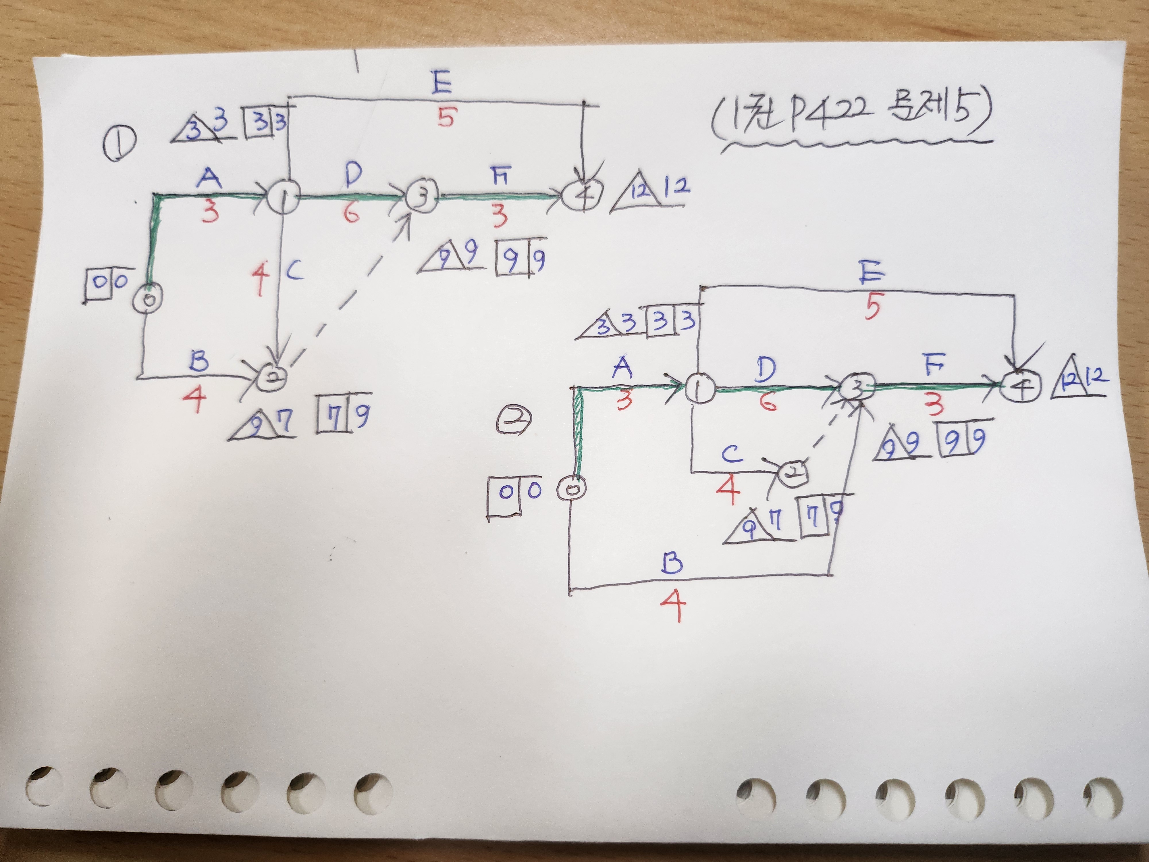 1권P422 문5) 공정표 문의 입니다.