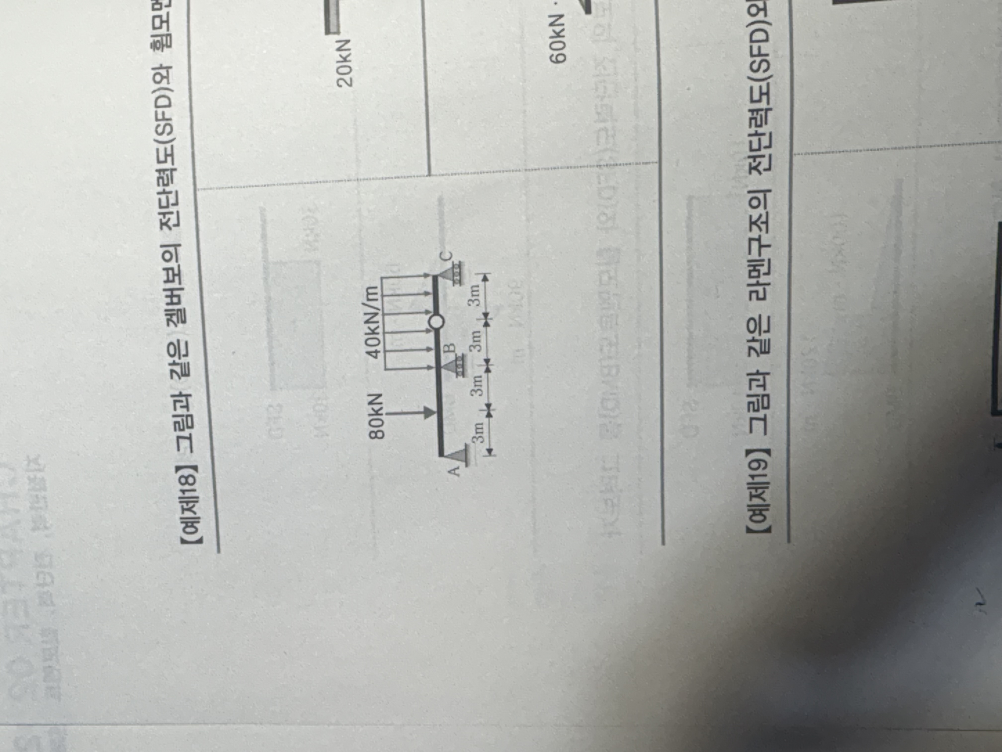 -(V_B)(6)+(80)(3)+(40*3)(7.5)+(60)(9)=0 으로부터 V_B=+280kN이 계산되고,
