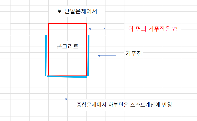 그러면 보 단일문제에서 스라브가 없는데 스라브 두께만큼의 콘크리트 옆면은 .....