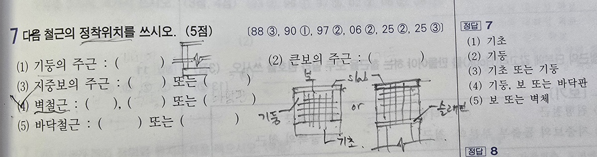 *문제에서 주어진 ( )항목대로 답을 작성하시면 되겠습니다../*벽체철근을 기초판에 정착되는 경우도 있으니 4개의 항목중 질문하는 갯수대로 답을 작성하시면 되겠습니다..참고하세요..