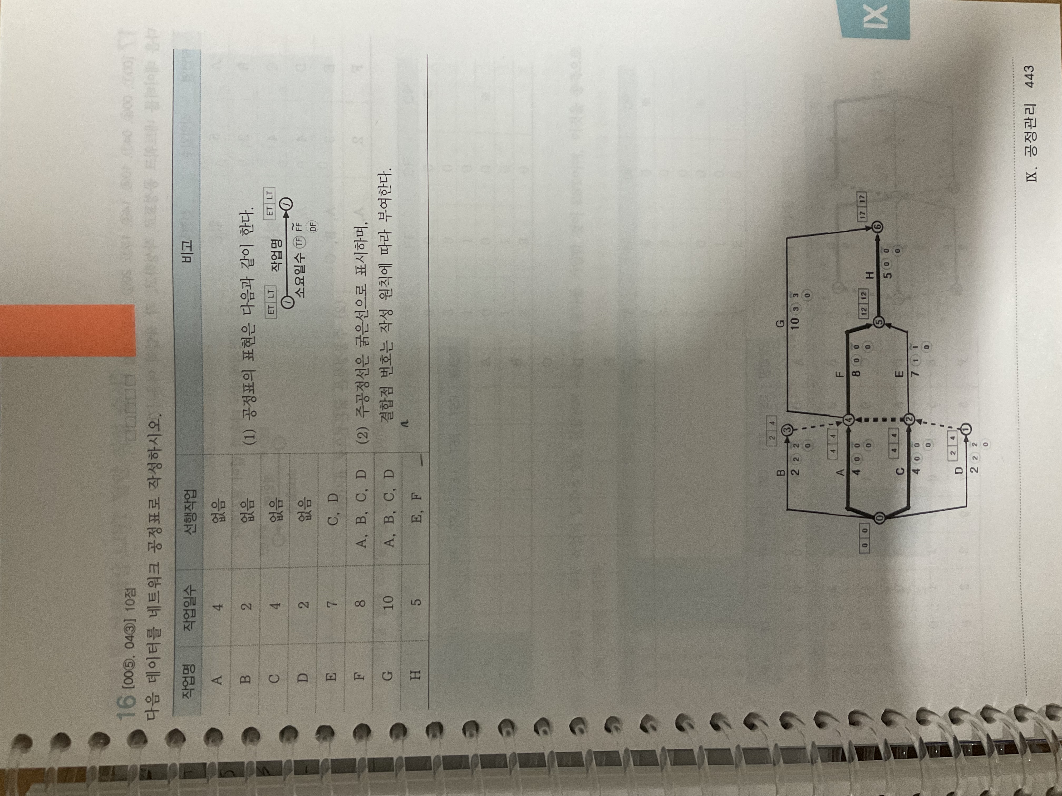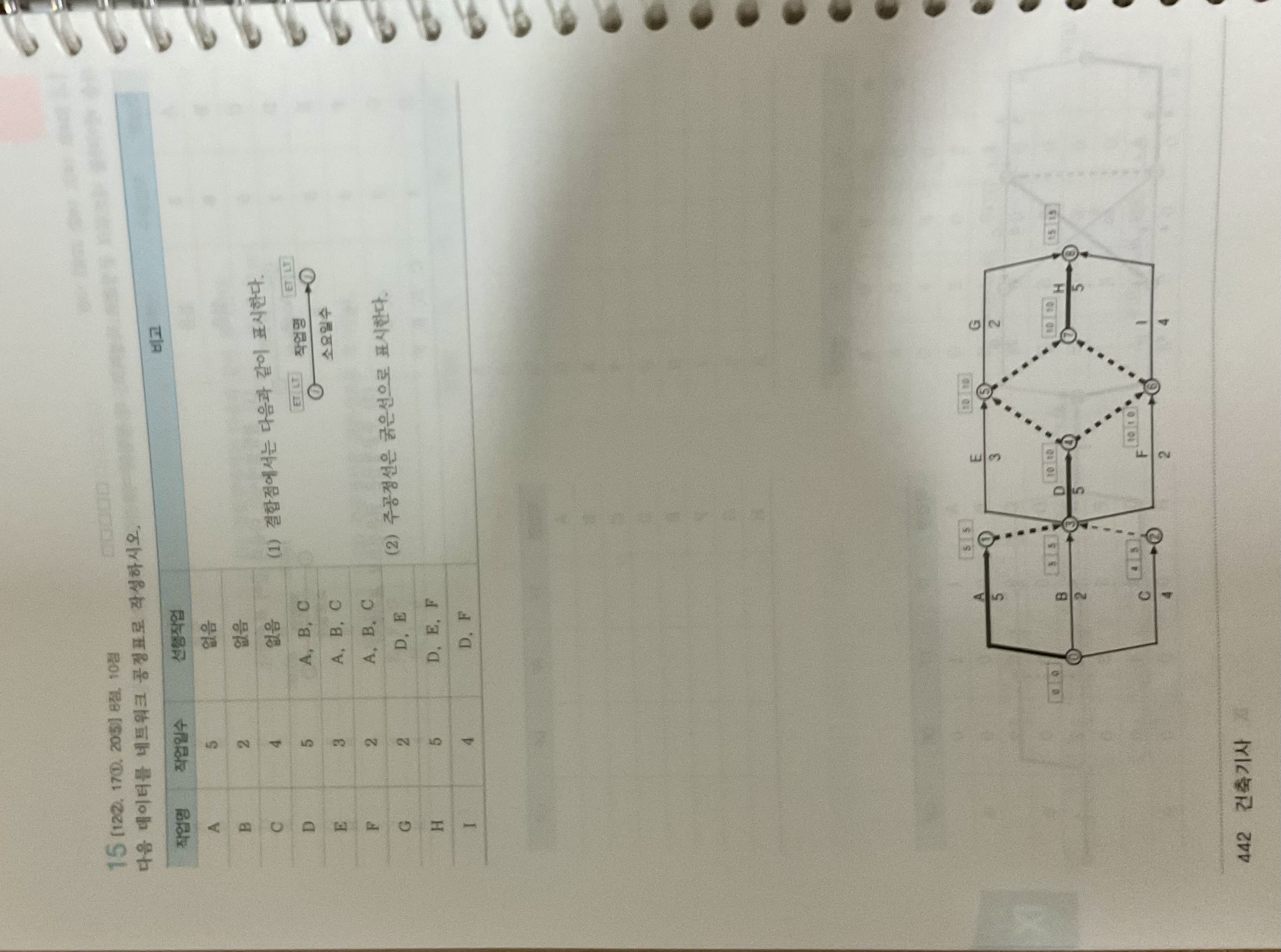 공정표 문제에서 에이랑 비의 위치가 두 문제가 다른데 이러면 세모 네모 값이 다릅니다 어떨 때는 에이가 위 어떨 때는 아니고 작업일수 크기랑도 상관이 없고.. 전 에이를 위로 그렸는데 그러면 3번이 44가 됩니다 어느 경우에 이렇게 푸는지 알고 싶습니다