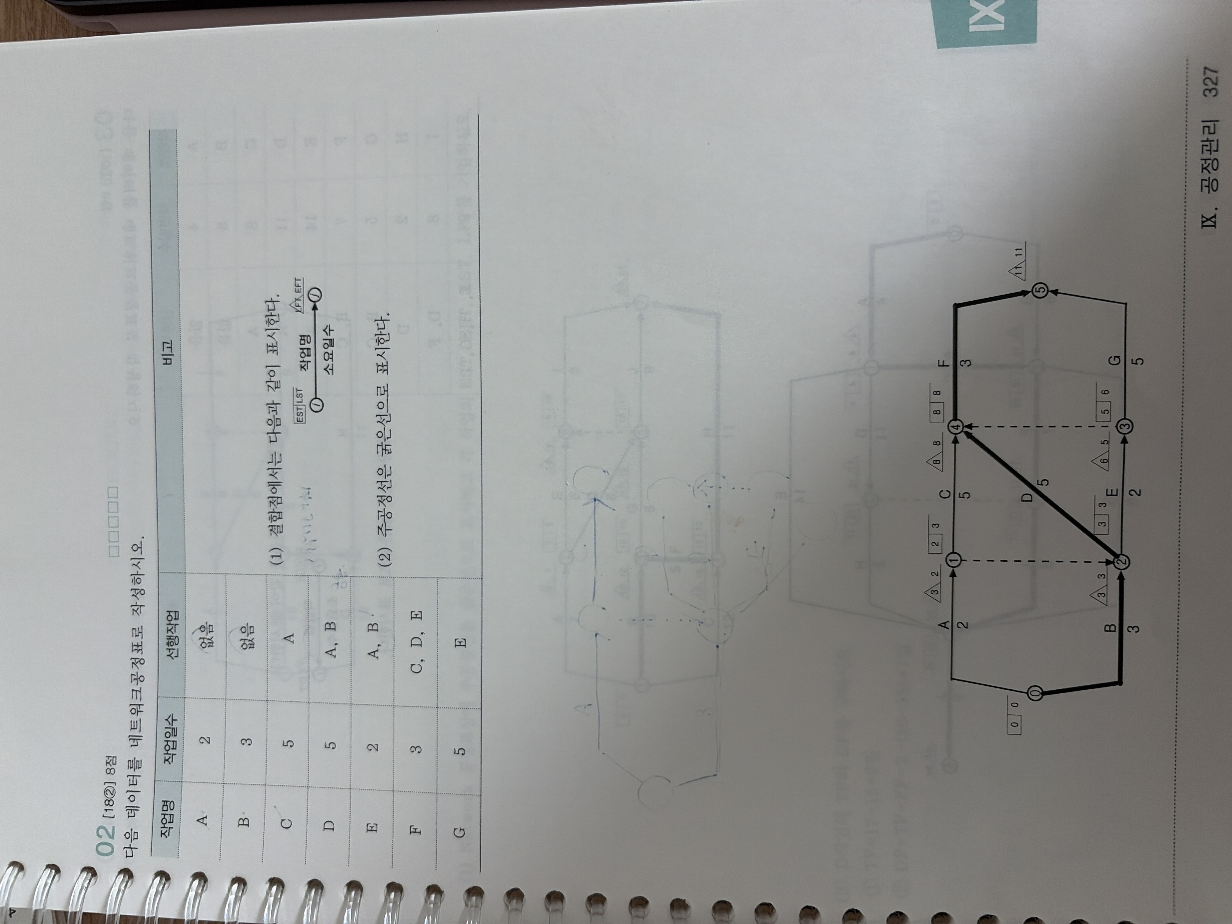 따라서 공정표 작성이 잘못되면 여유시간 계산은 아무 의미가 없고 0점 처리된다고 생각하시고, 공정표 작성에 주의를 기울여 주시기 바랍니다.